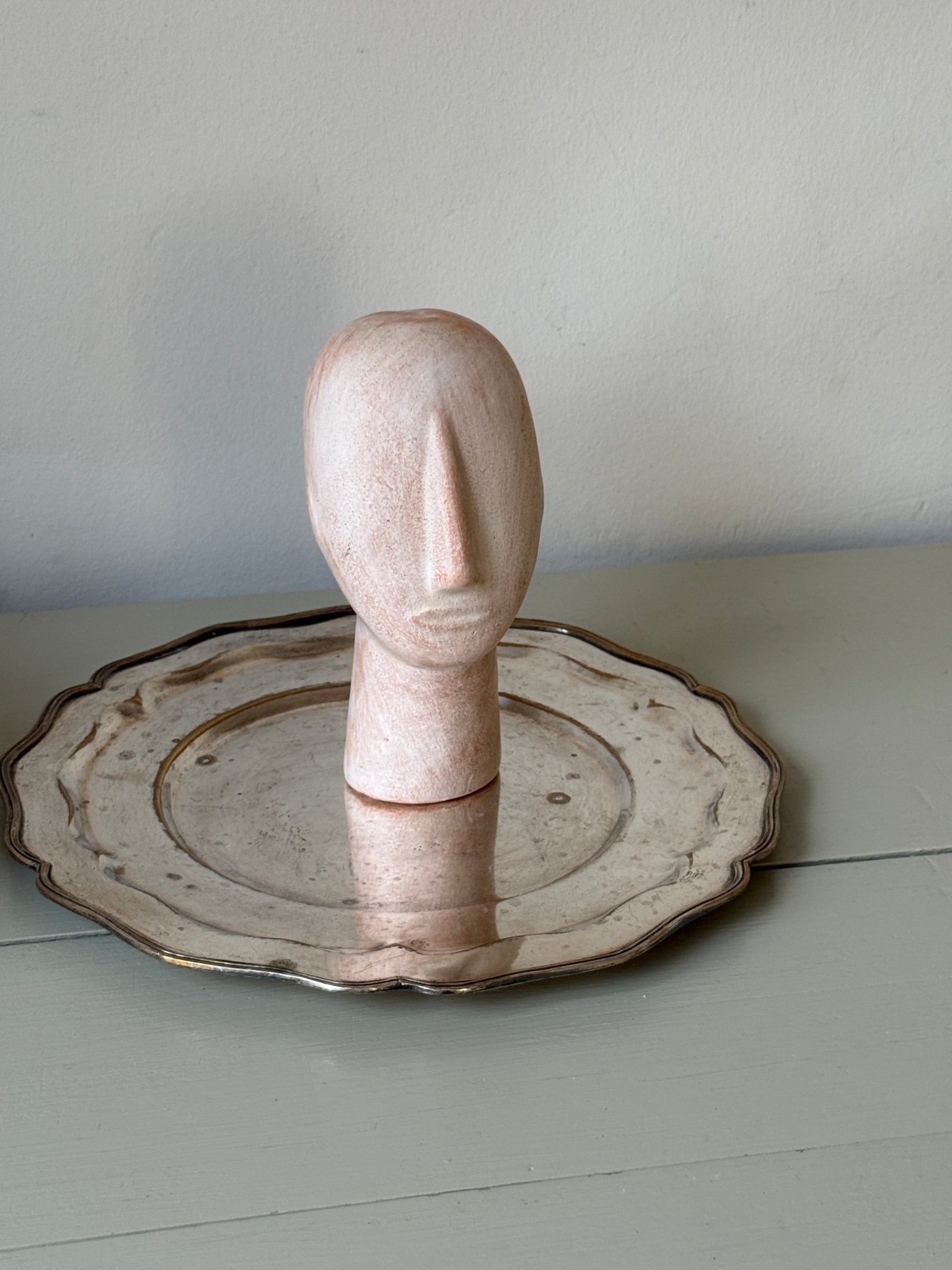 Neolithic sculpted head, a modern reproduction of an example from Amorgos, Greece, originally dated to around 5000 B.C. The original is housed in the National Archaeological Museum of Athens. In mint condition.