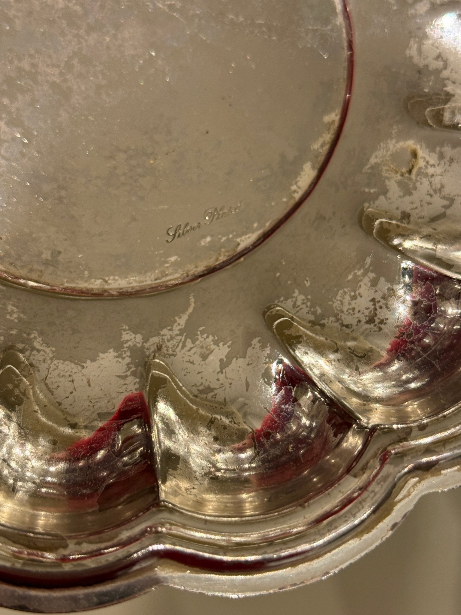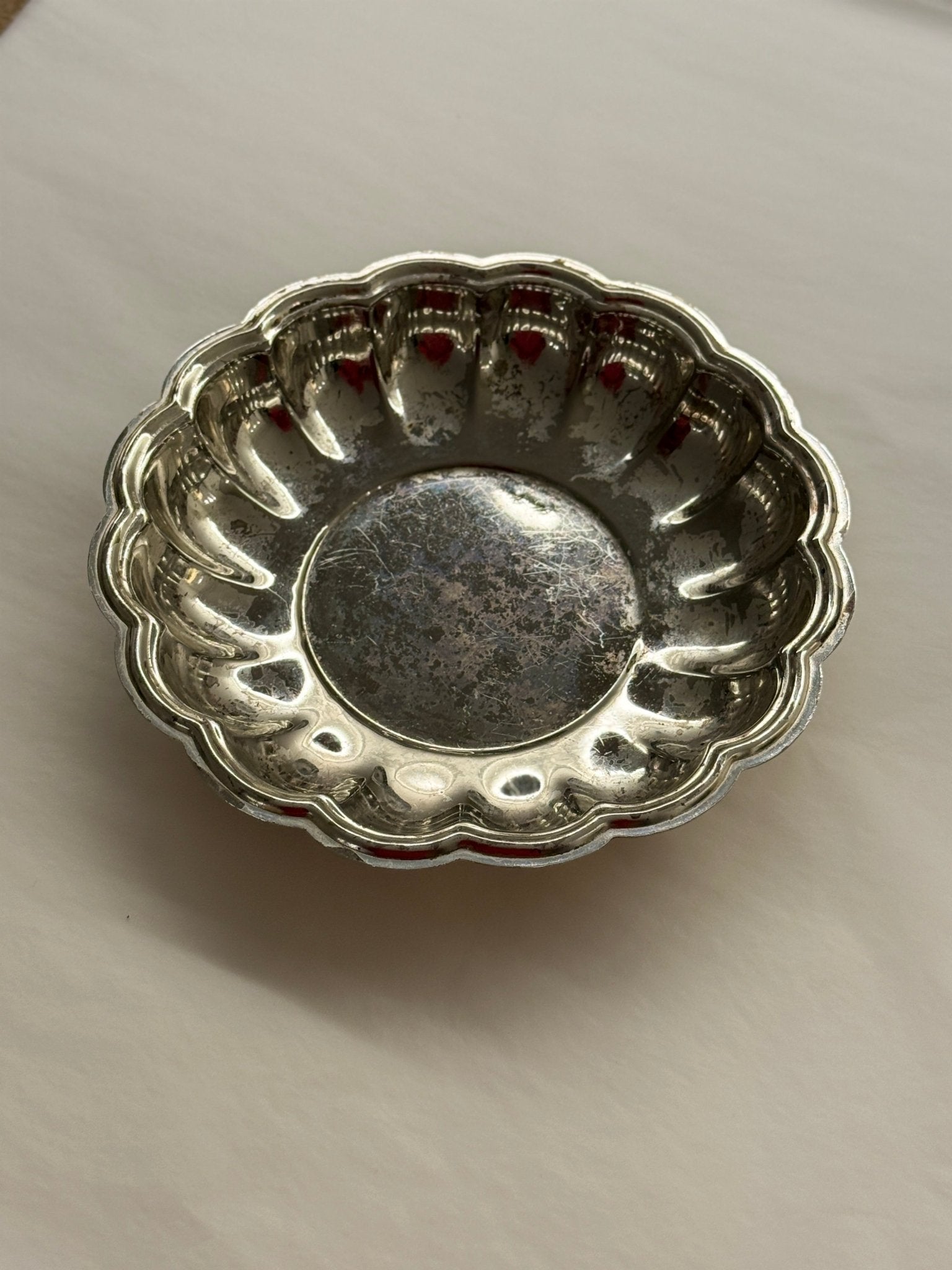 Beautiful silver plated bowl from Italy. Excellent for serving or storing trinkets. Patina appears, still in beautiful condition.