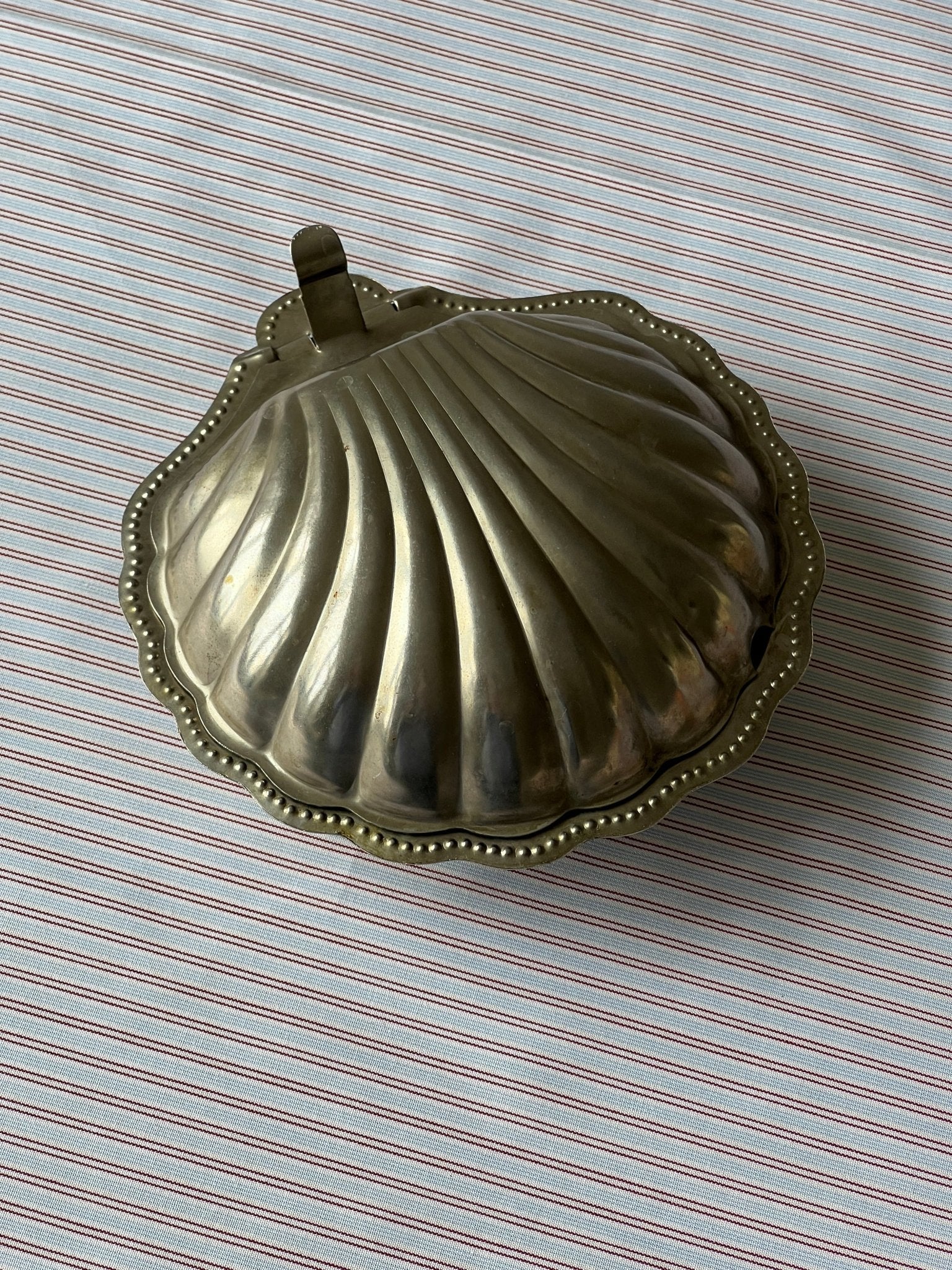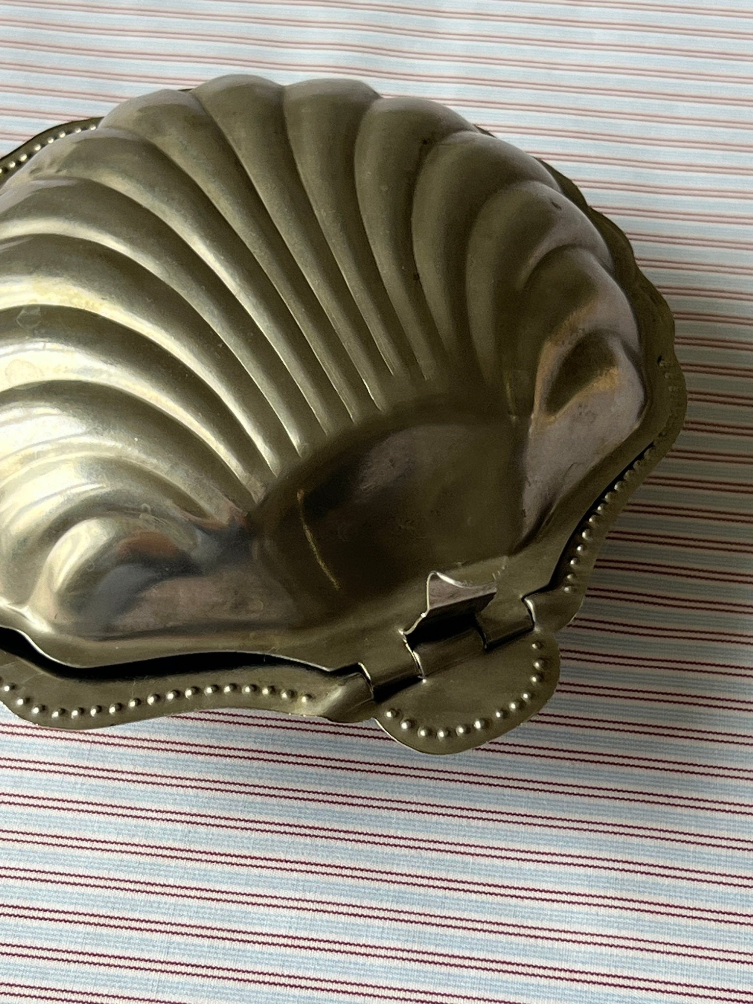 Metal clam shell jewelry box from Italy. Can also be used for serving. In good vintage condition.