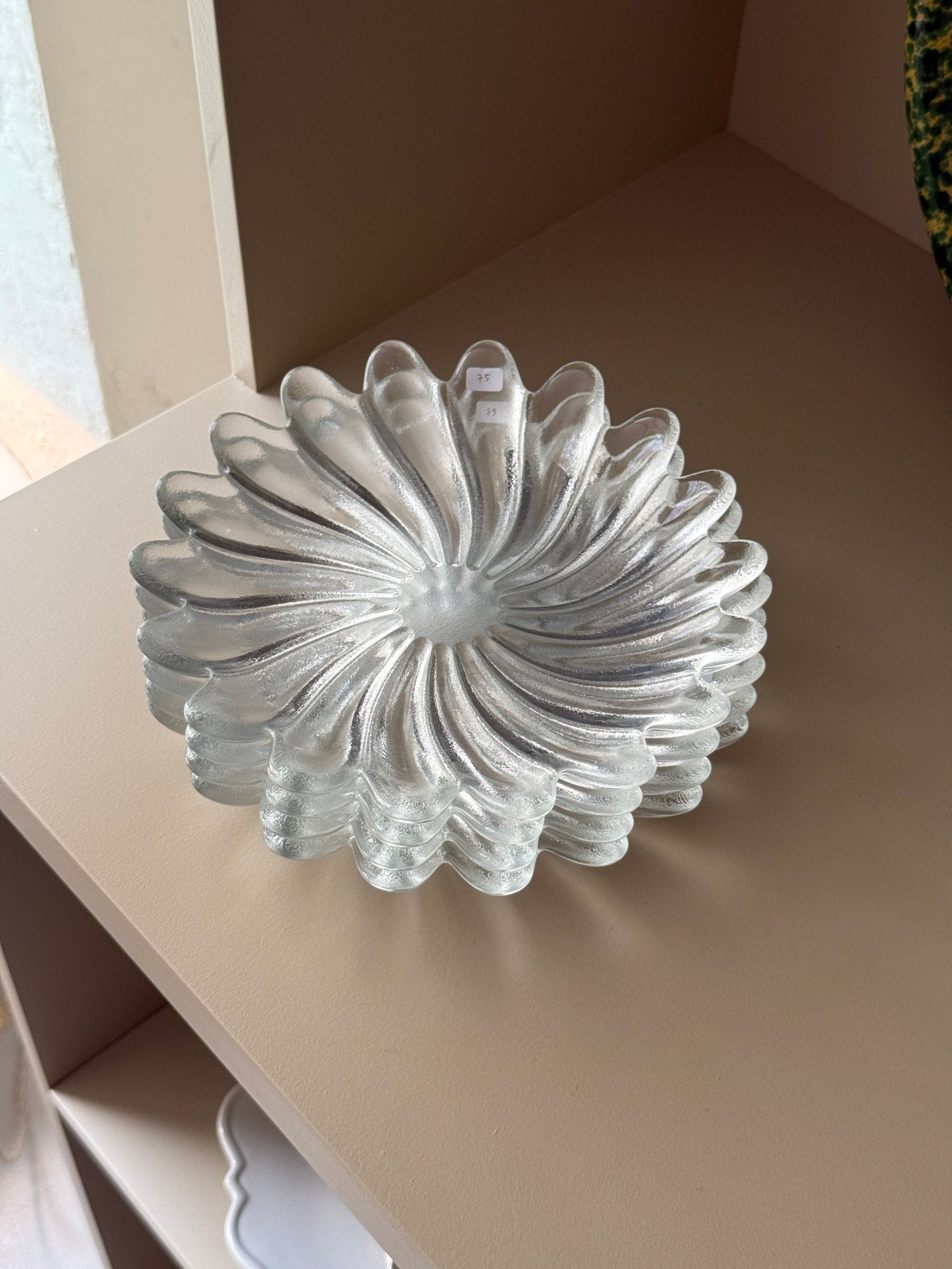 Flower-shaped glass plates. 5 pcs left. In mint condition.