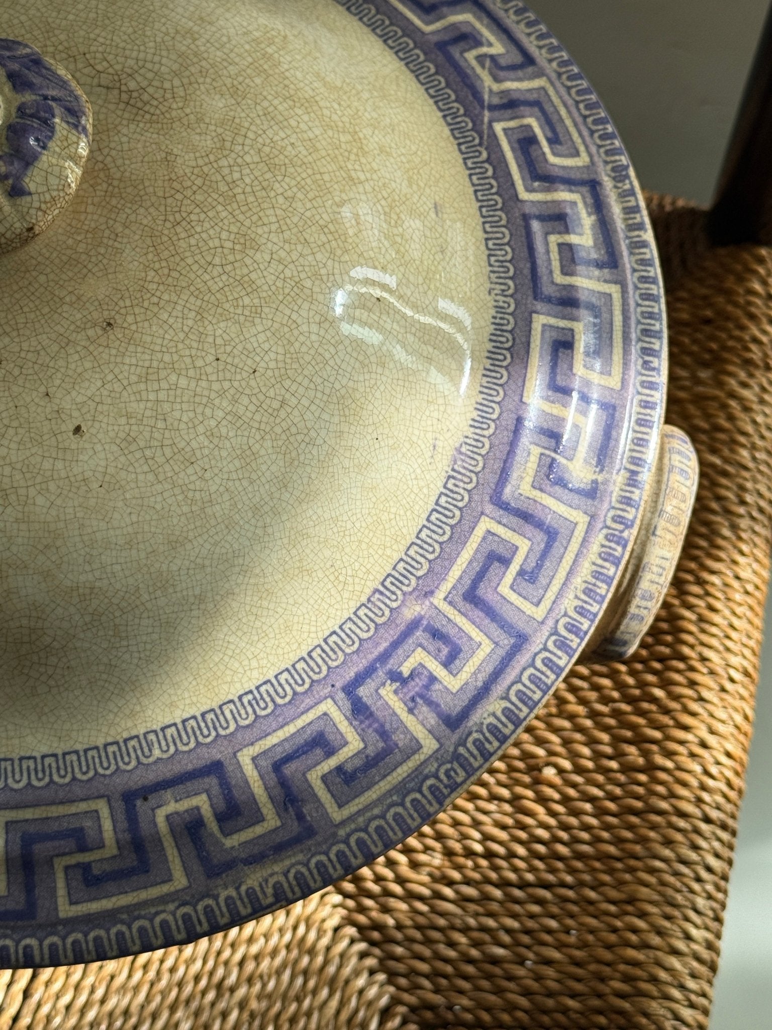 Large, antique lavender-colored tureen. In well-kept condition with beautiful patina as shown in the photos.