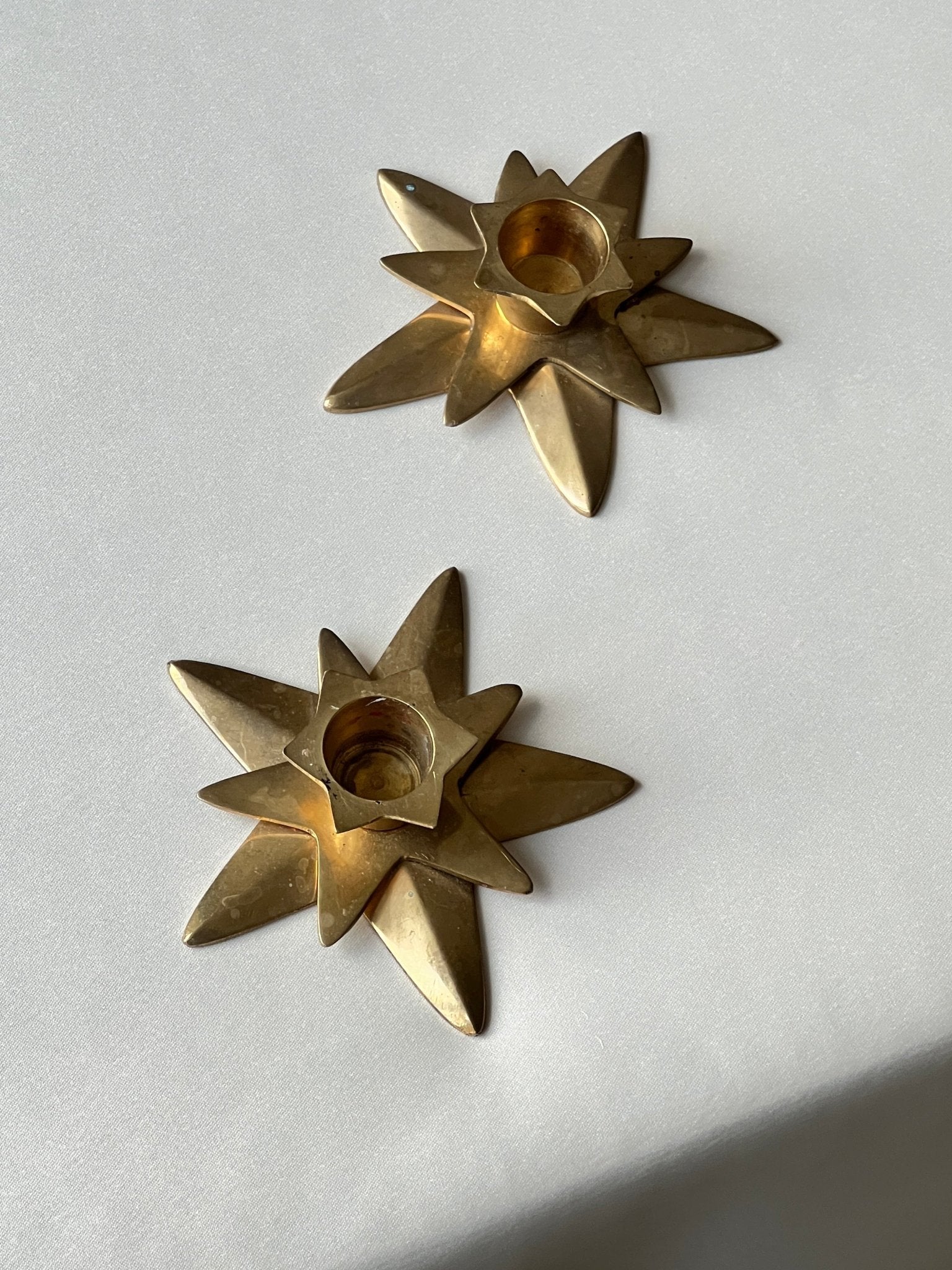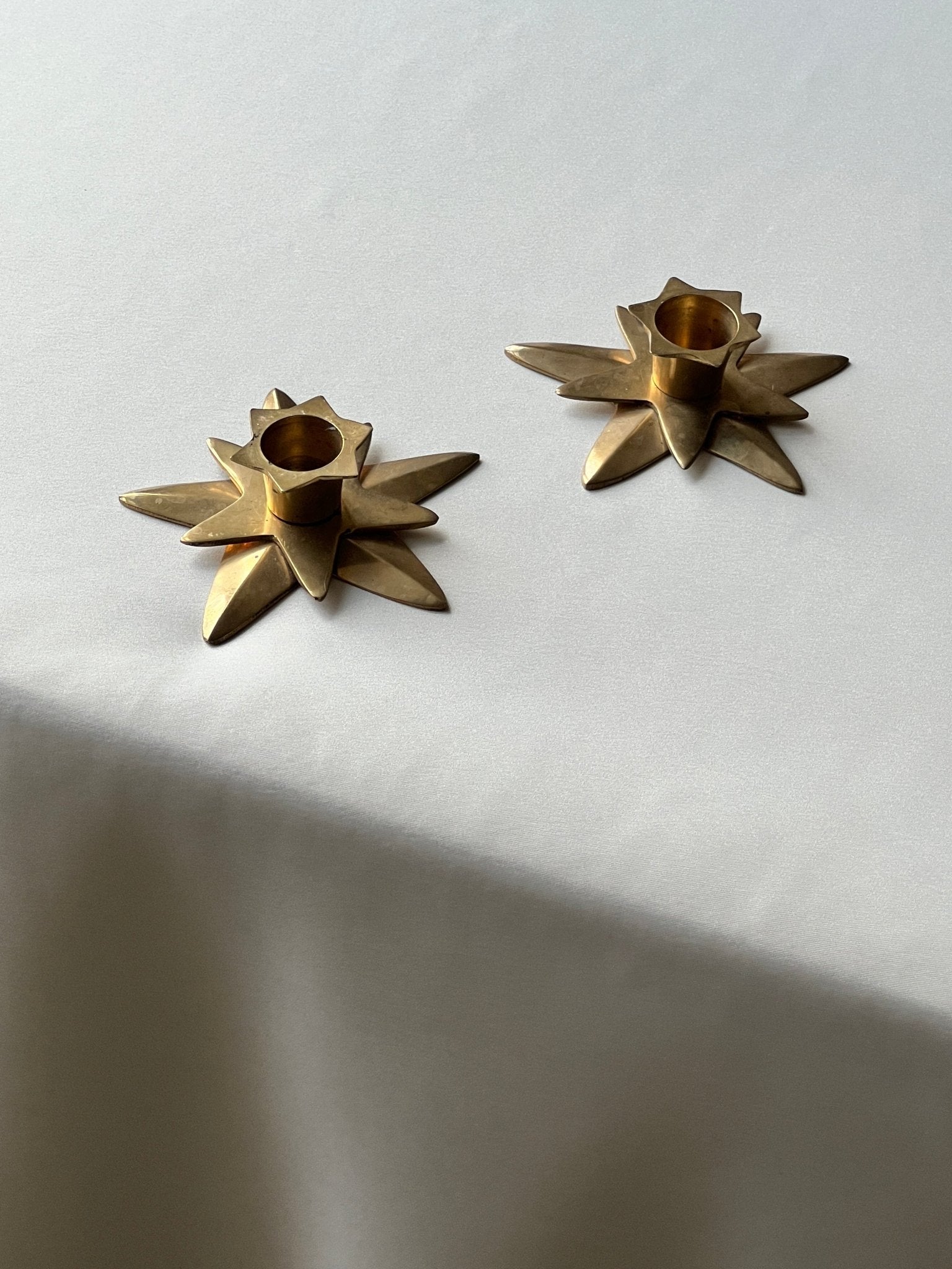Pair of star brass candleholders. 2 pcs, sold together. Fits a normal candle. In excellent condition.