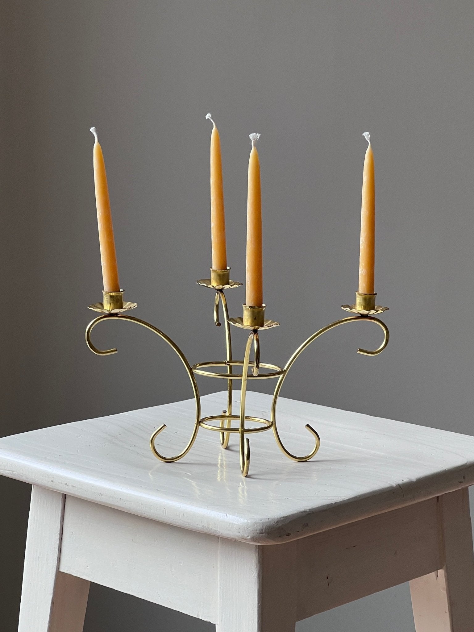 Beautiful four-armed brass candelabra. For small candles. In excellent condition.