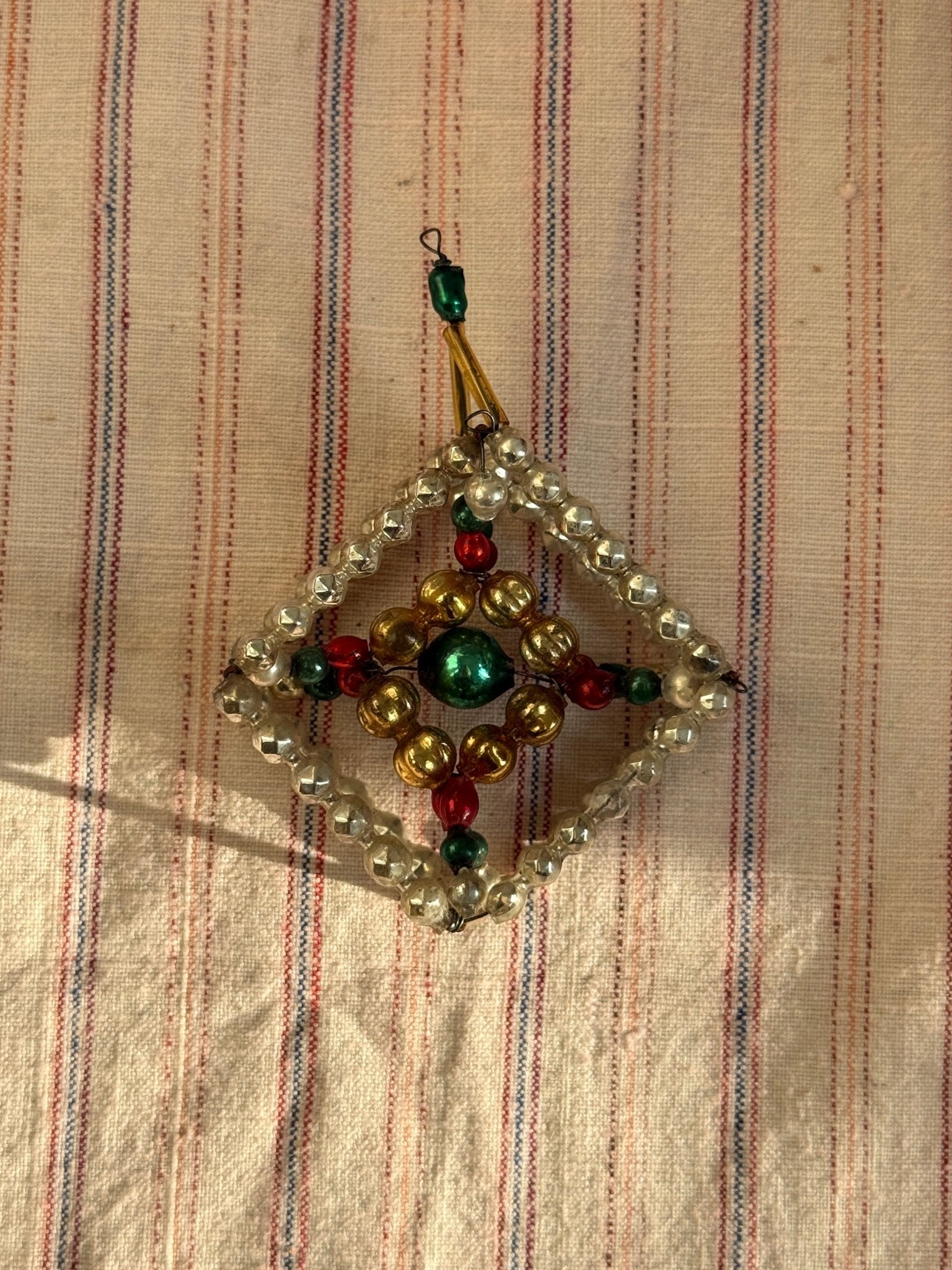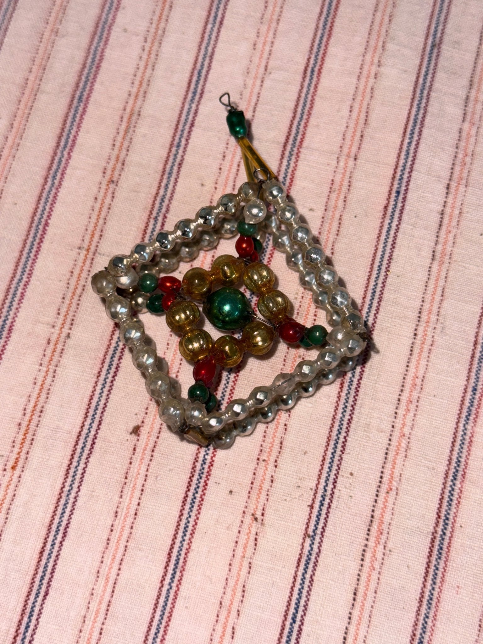Antique Gablonz ornament with multi coloured glass beads. L8 cm.