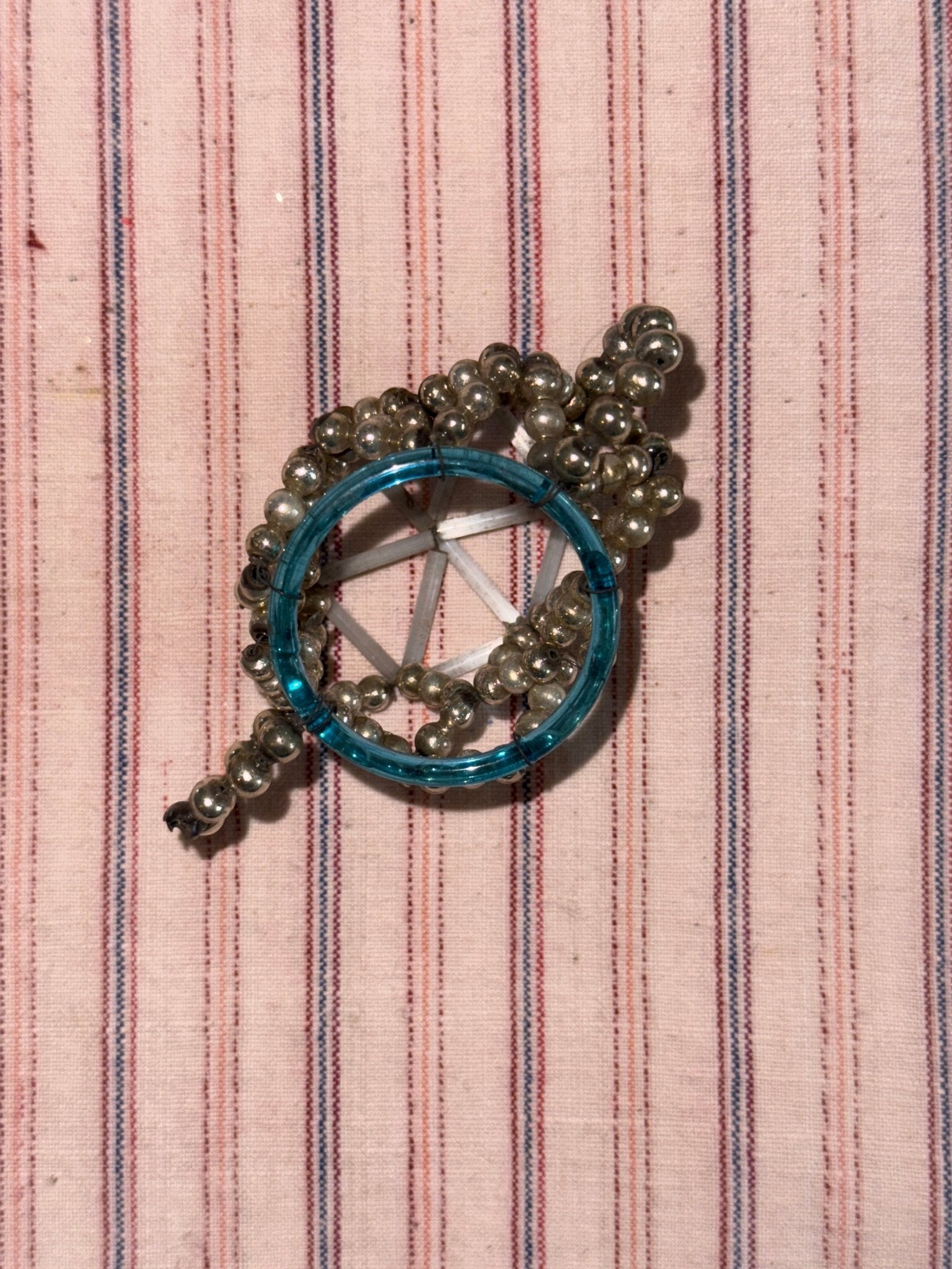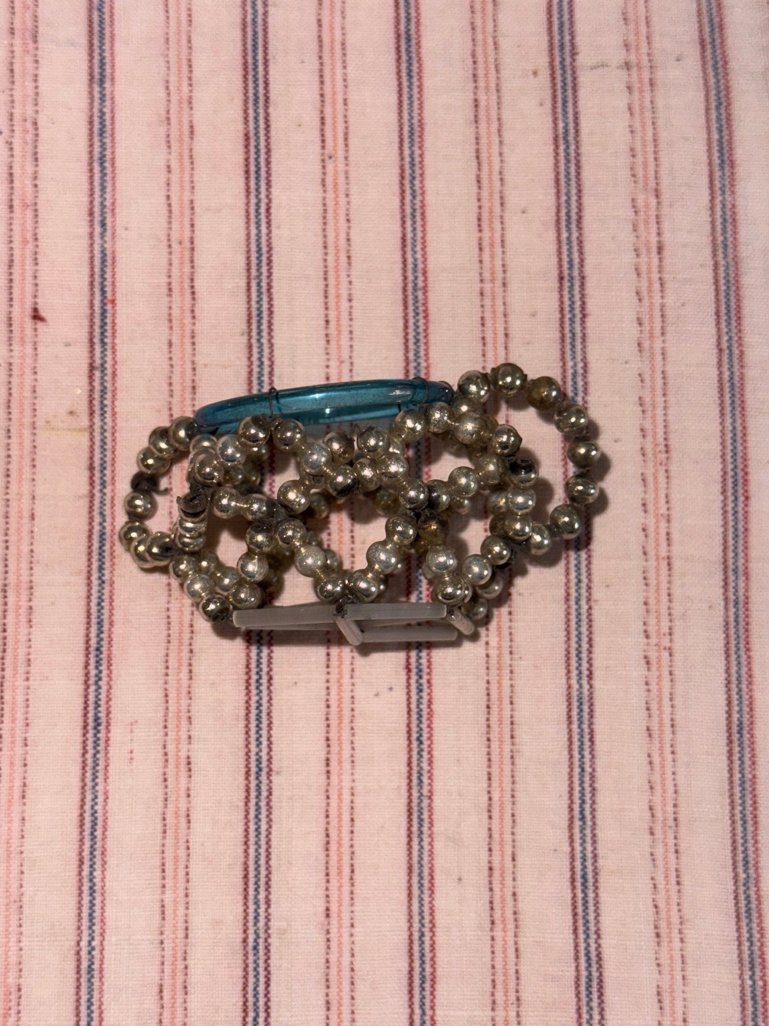Antique Gablonz basket ornament featuring silver glass beads. L7,5 cm.