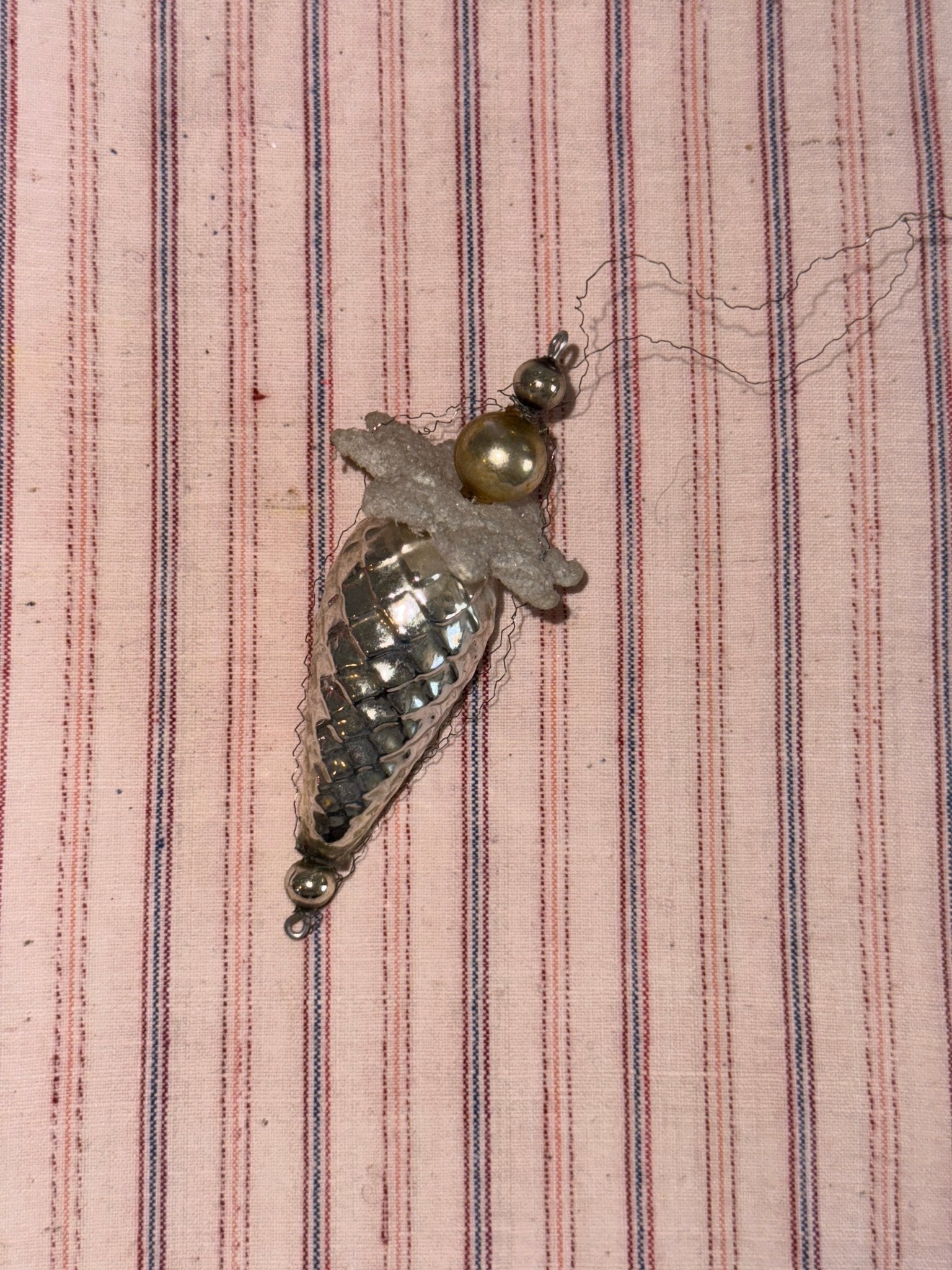 Antique Gablonz silver cone ornament. L10,5 cm.