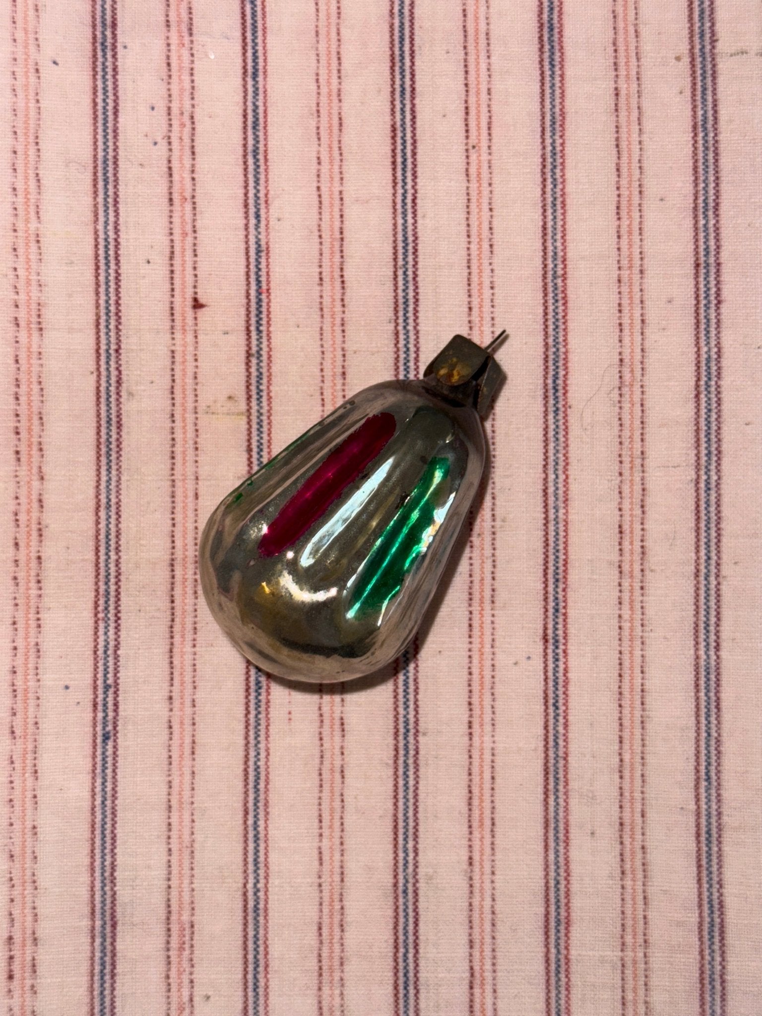 Antique German silver ornament with handpainted details. L6,5 cm,