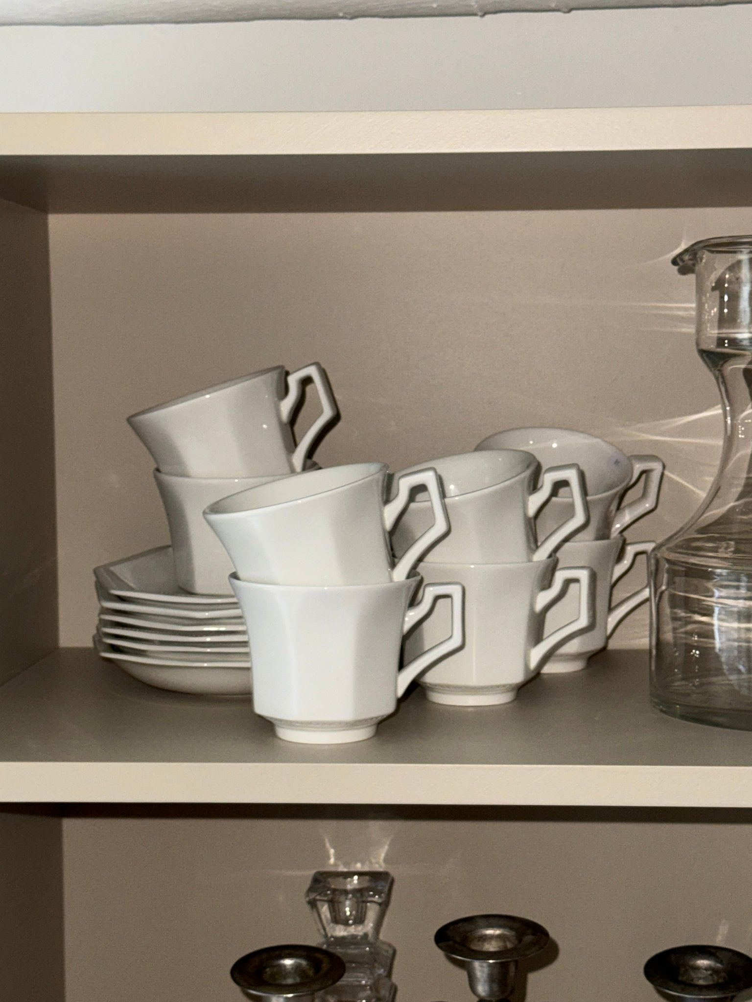 Cups H7, D8 cm. Saucers D14 cm.