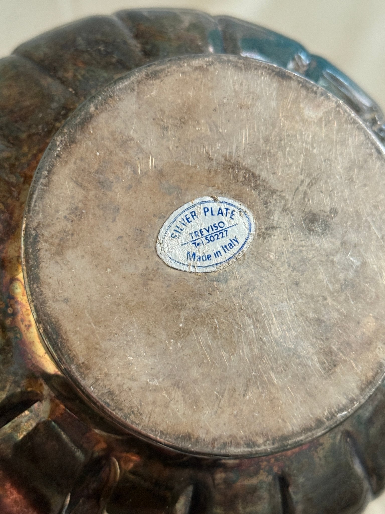 Footed silver plated bowl. Treviso, Italy. Comes with lots of beautiful patina.
