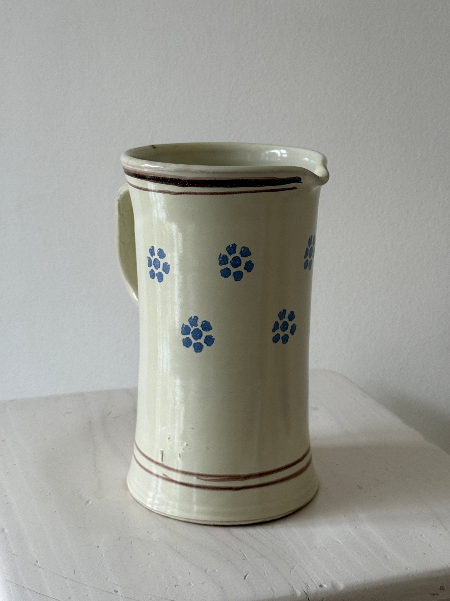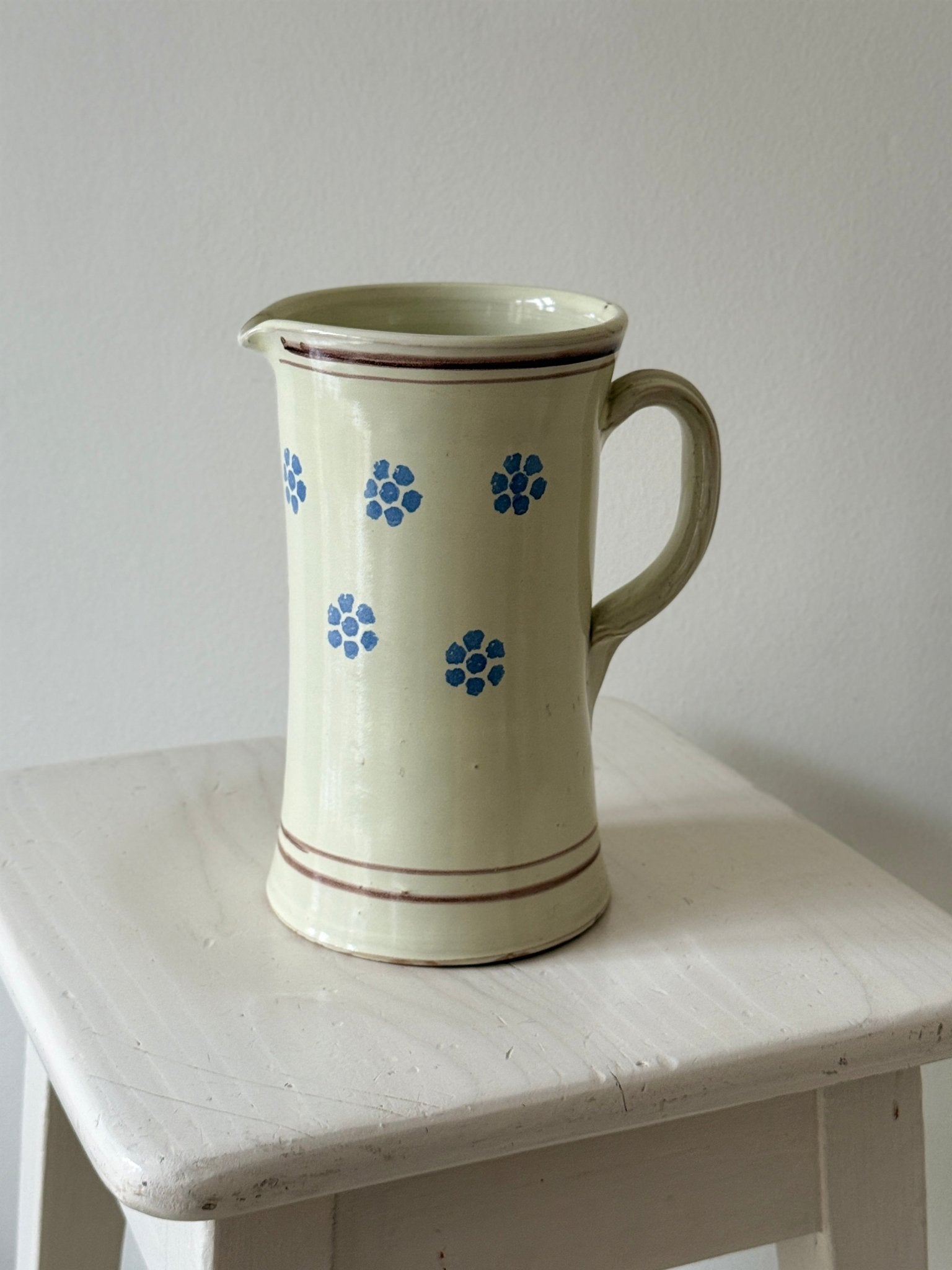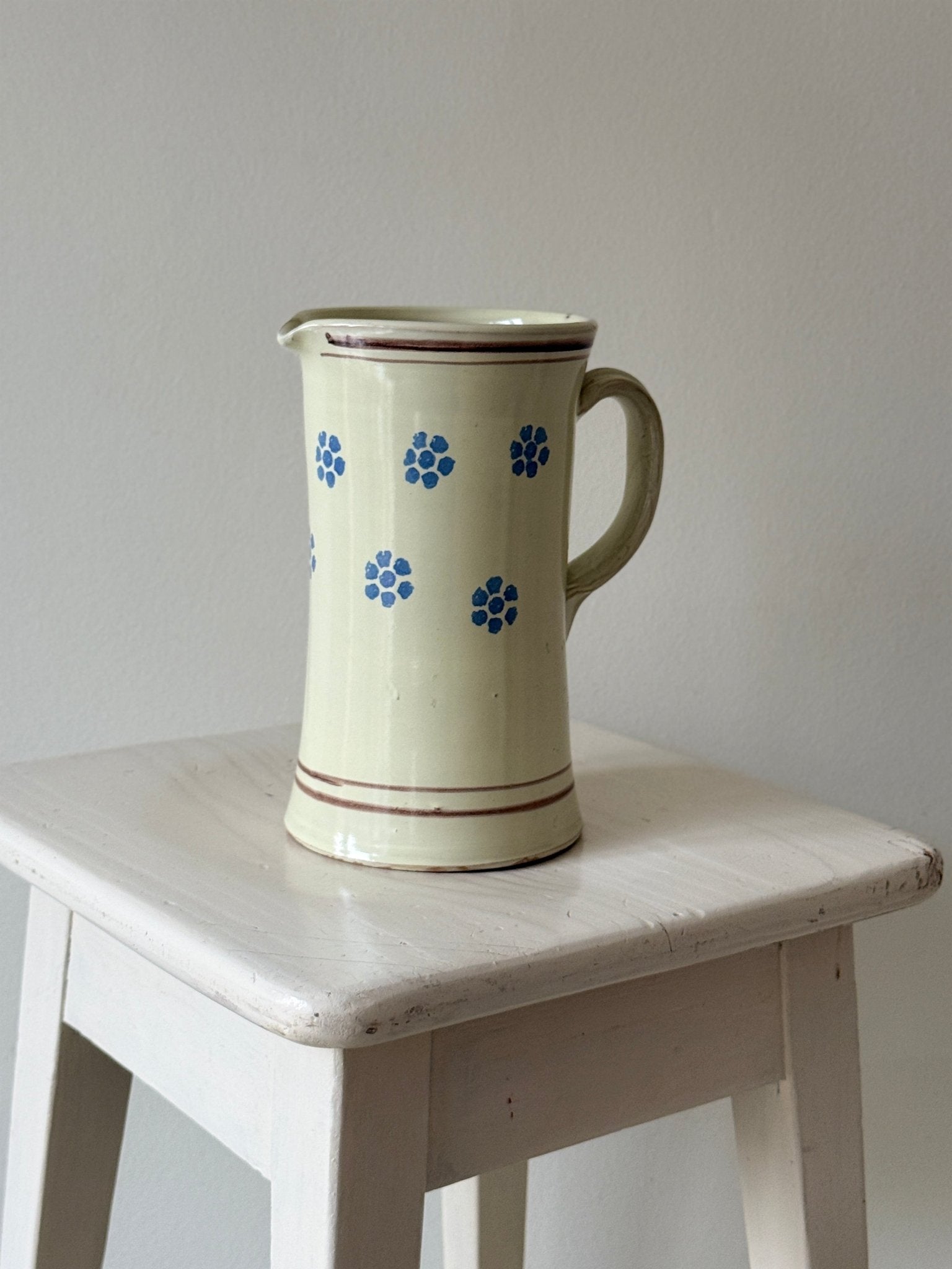 Stunning, Pugliese ceramic pitcher with handpainted blue flowers. In excellent condition.