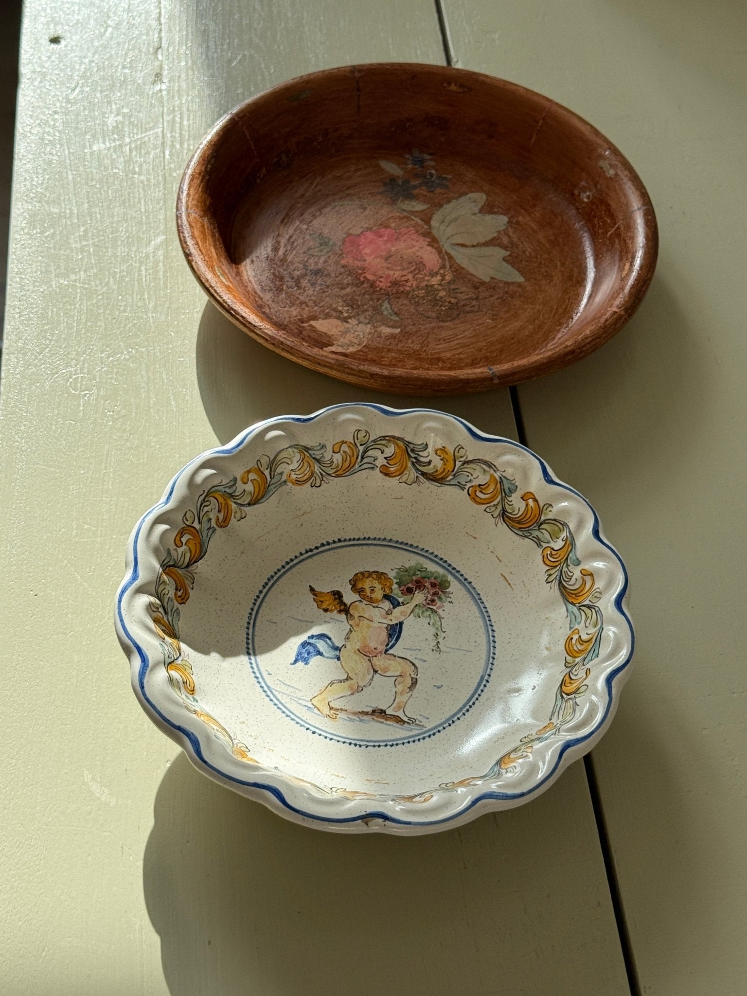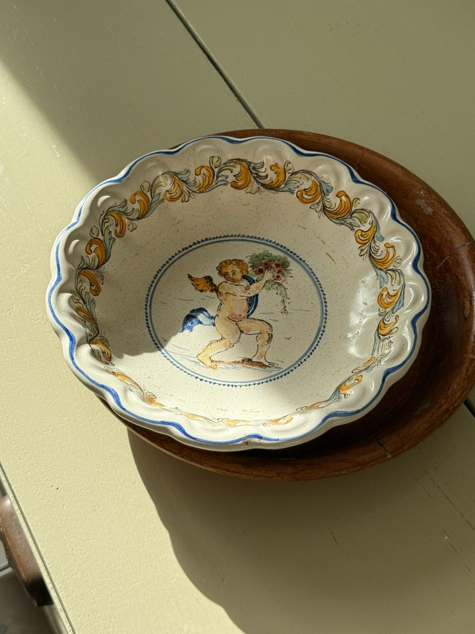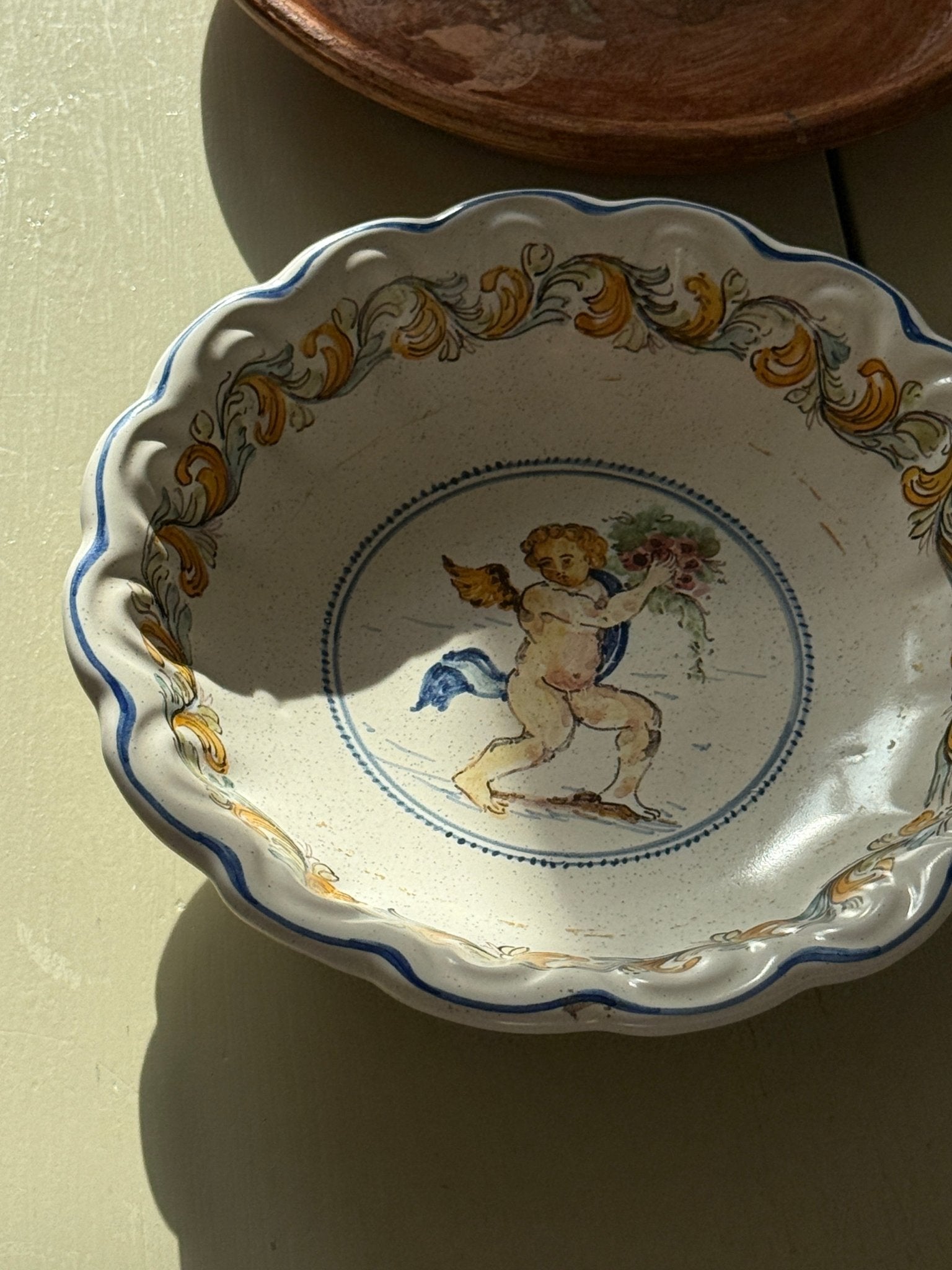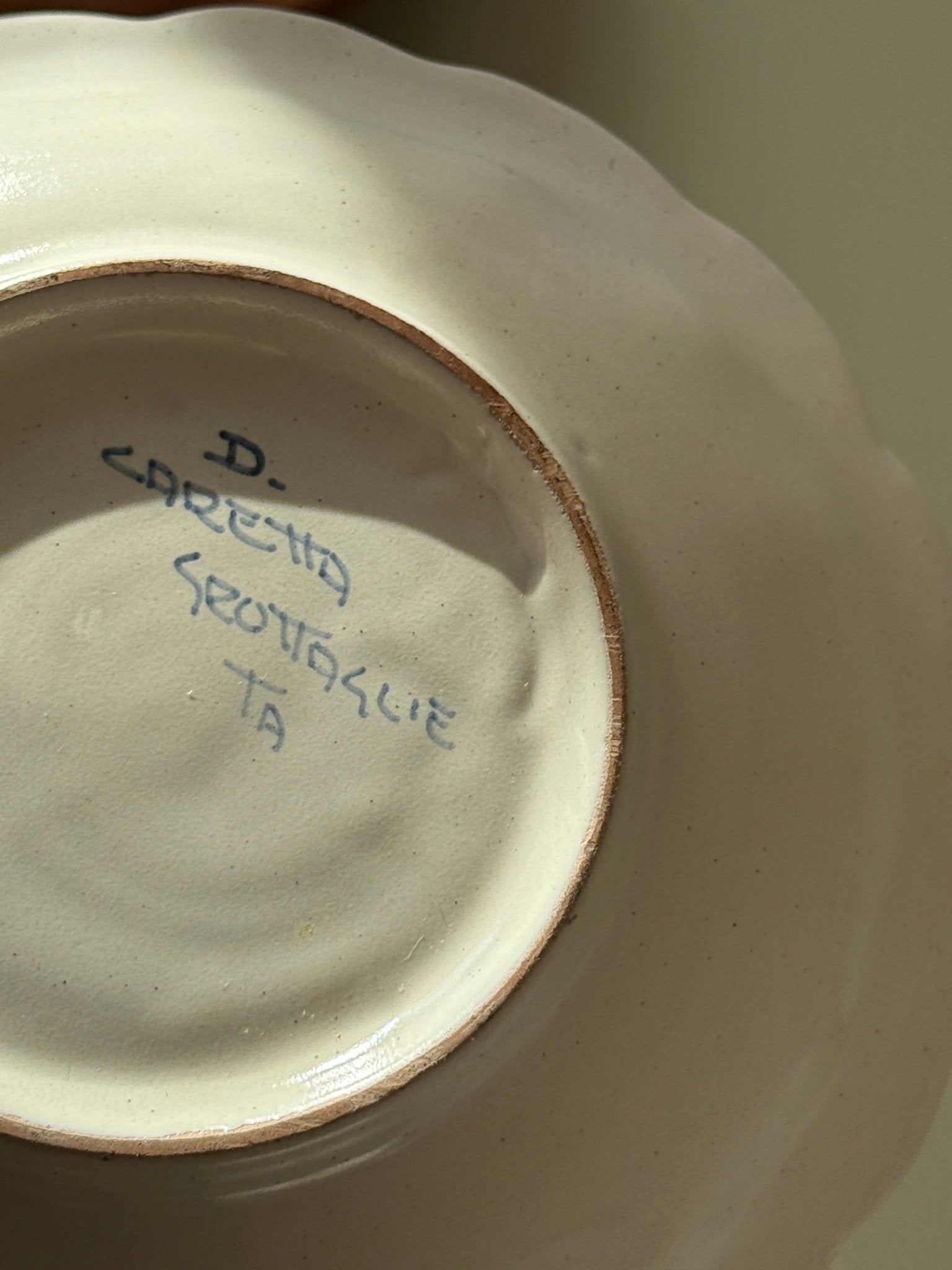 Ceramic bowl or wall plate with handpainted decoration. Grottaglie, Italy. In mint condition. Wall mount is included.