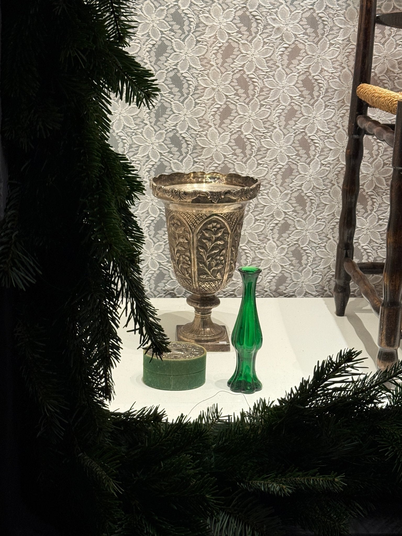 Stunning silver plated vase adorned with delicate decorations. Found in Bologna, Italy. In excellent condition.