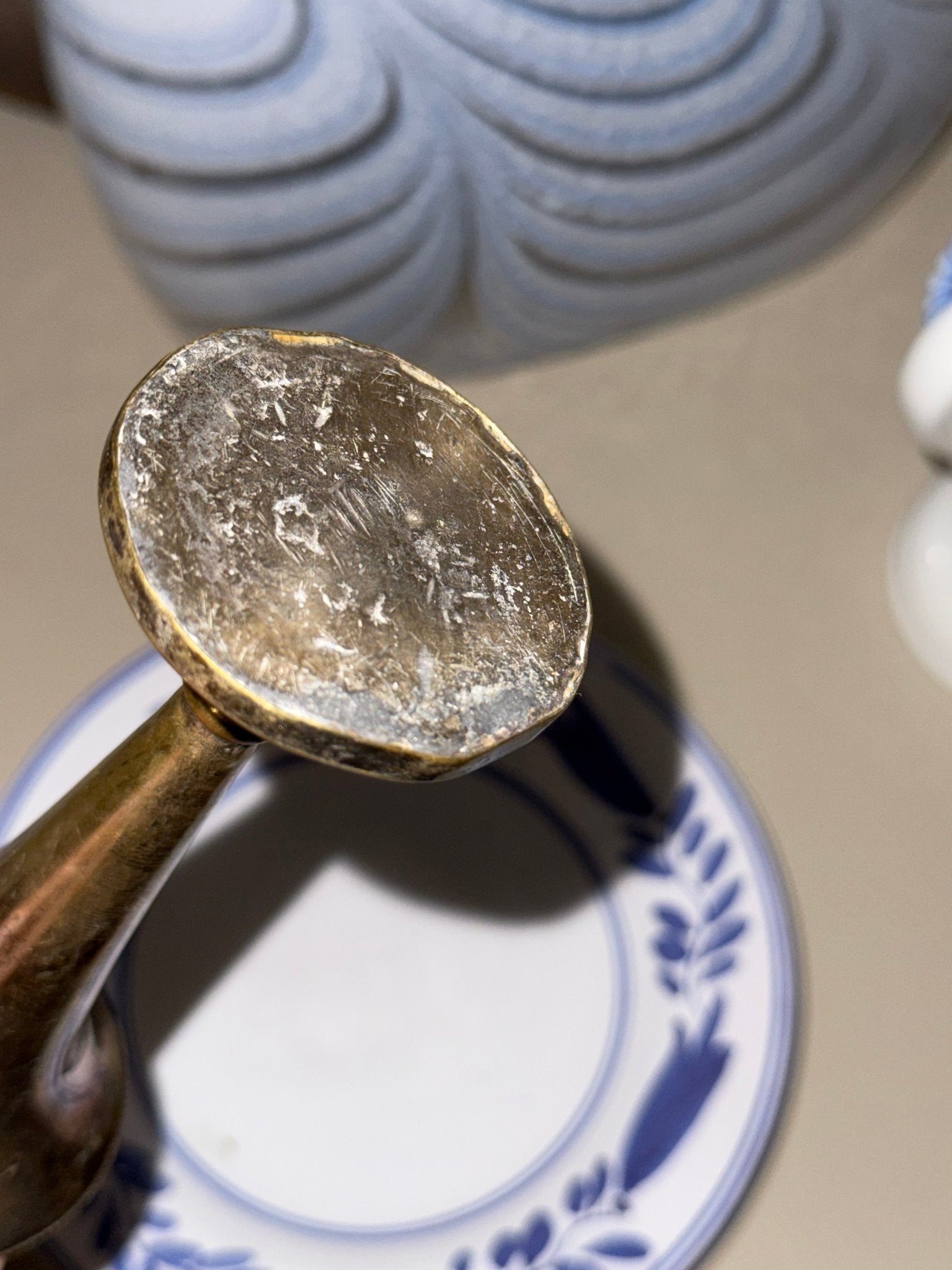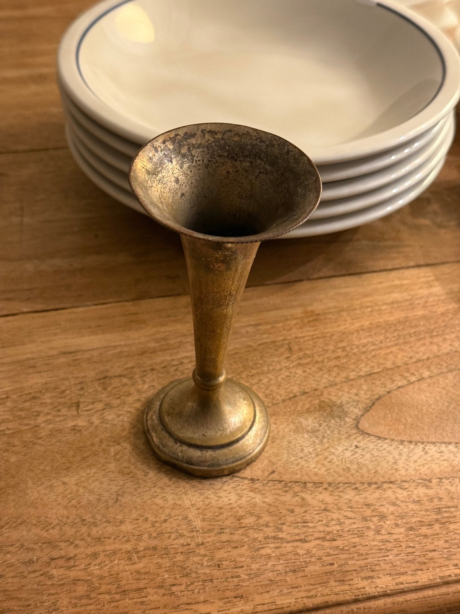Small, gorgeous trumpet vase in brass. Comes with lots of beautiful wear.