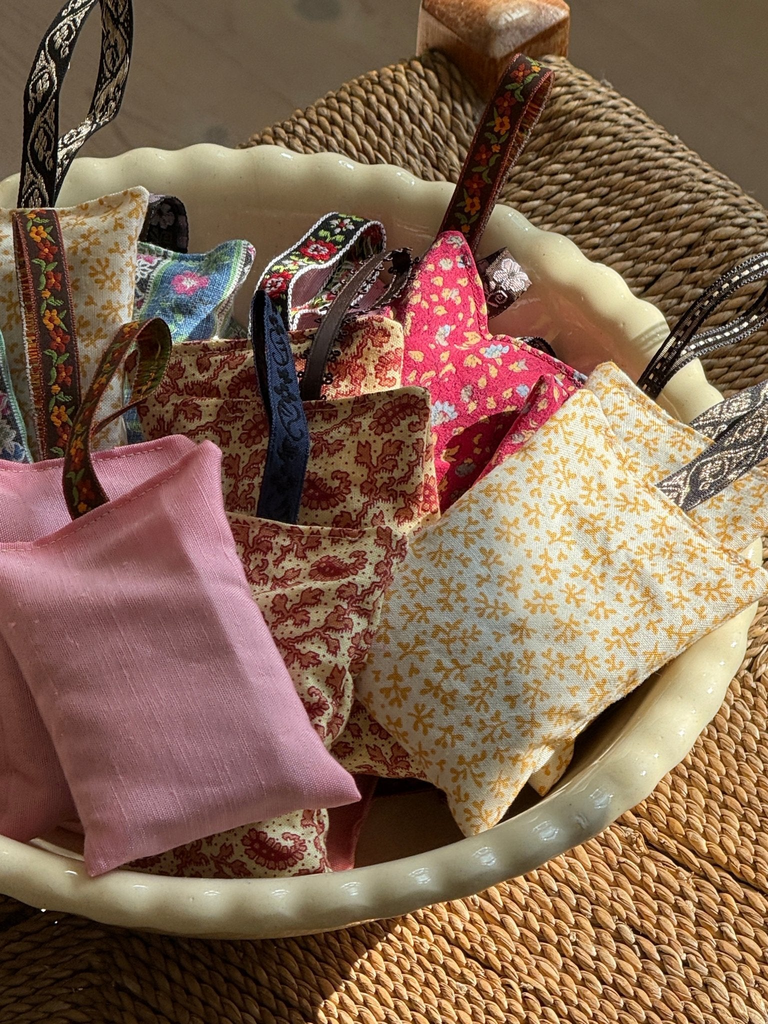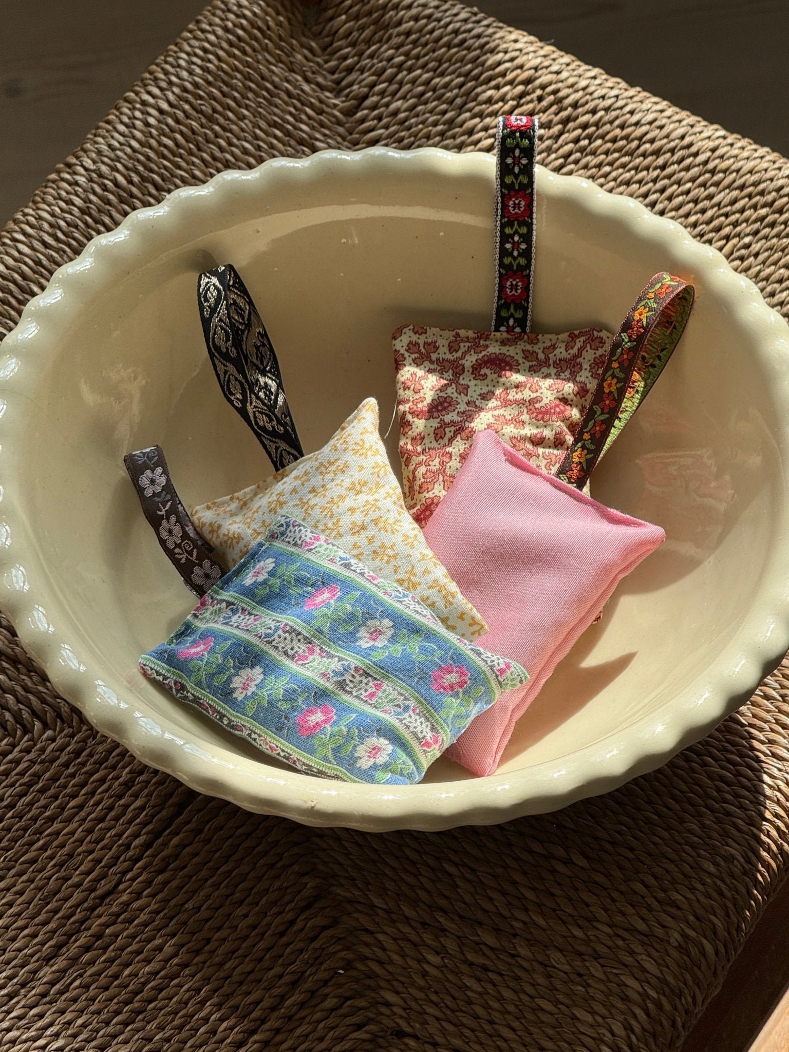 Handmade lavender sachet. Crafted from vintage floral fabric and finished with a delicate ribbon, these lavender sachets bring a soothing scent to any space. Perfect for drawers, nightstands or as a thoughtful gift.