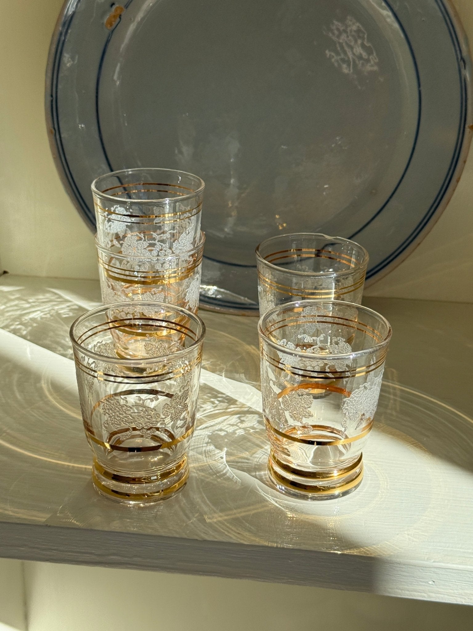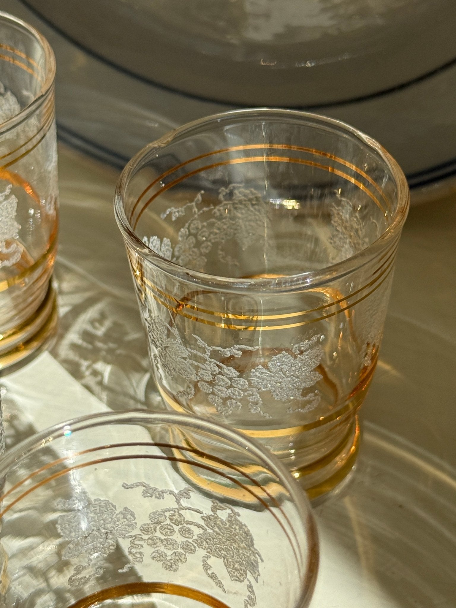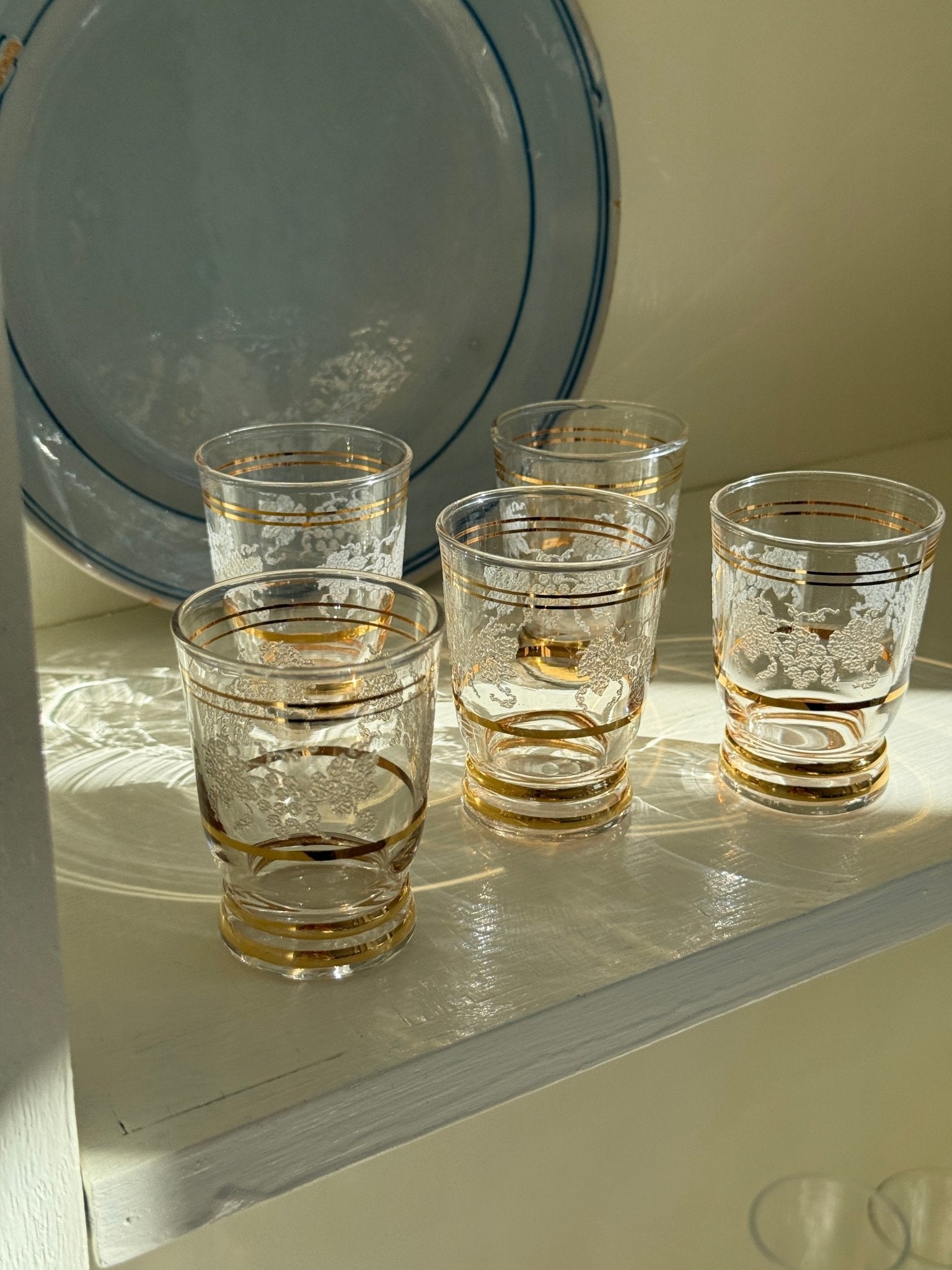 Antique liqueur glasses. 5 pcs available, price is per piece. In excellent condition except from one tiny edge notch on one glass.