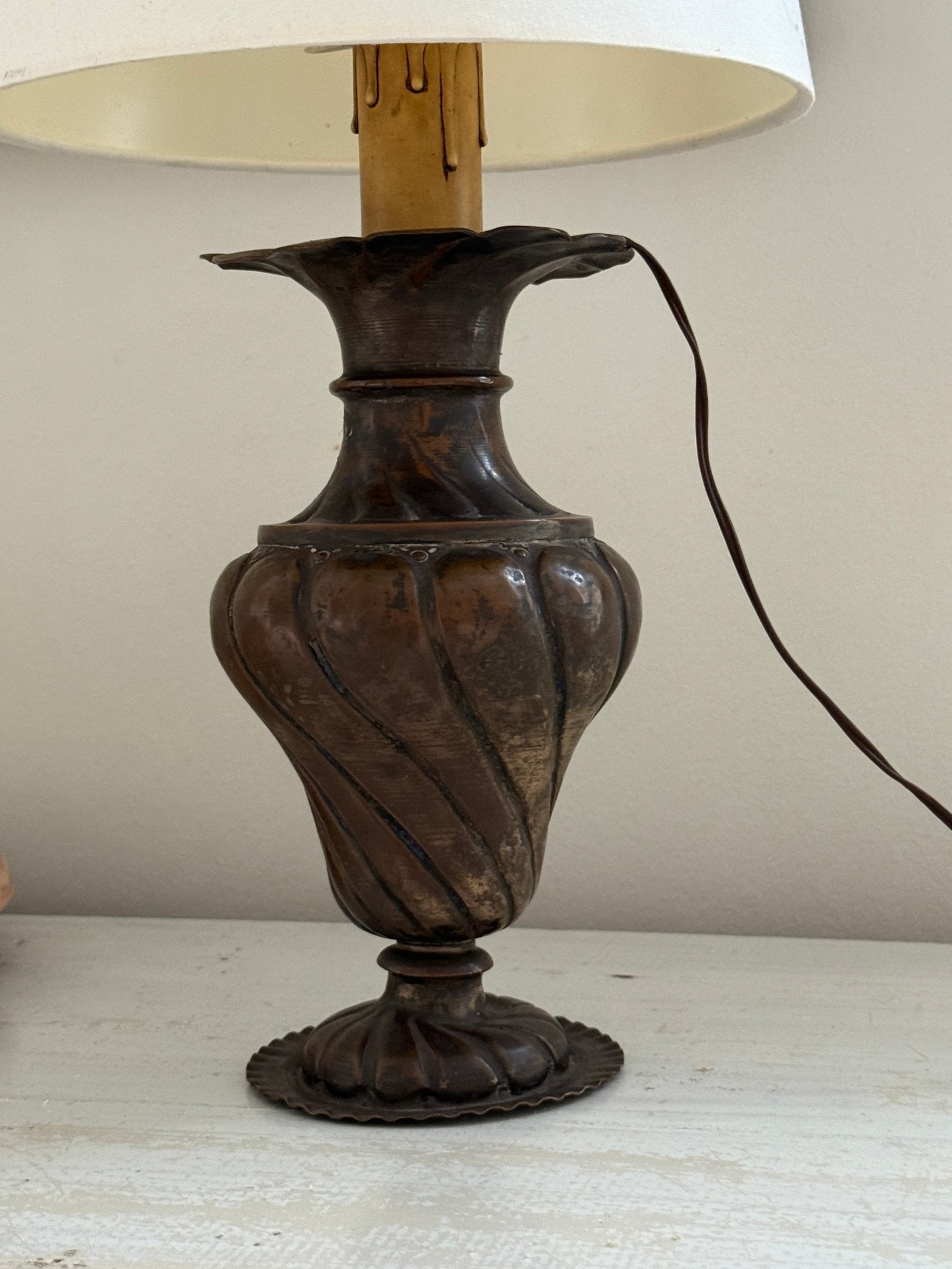 Stunning, Italian table lamp with a sculptural base made of metal and a dark patinated finish. In well-kept vintage condition with small signs of age consistent with its age. Shade is not included.