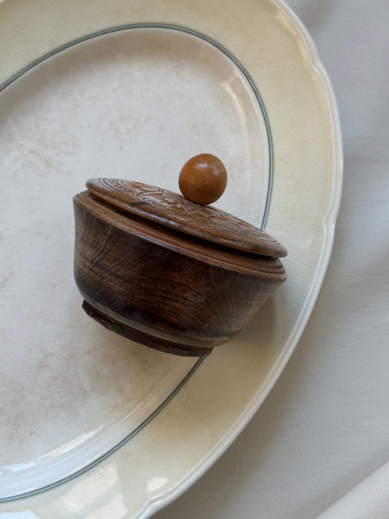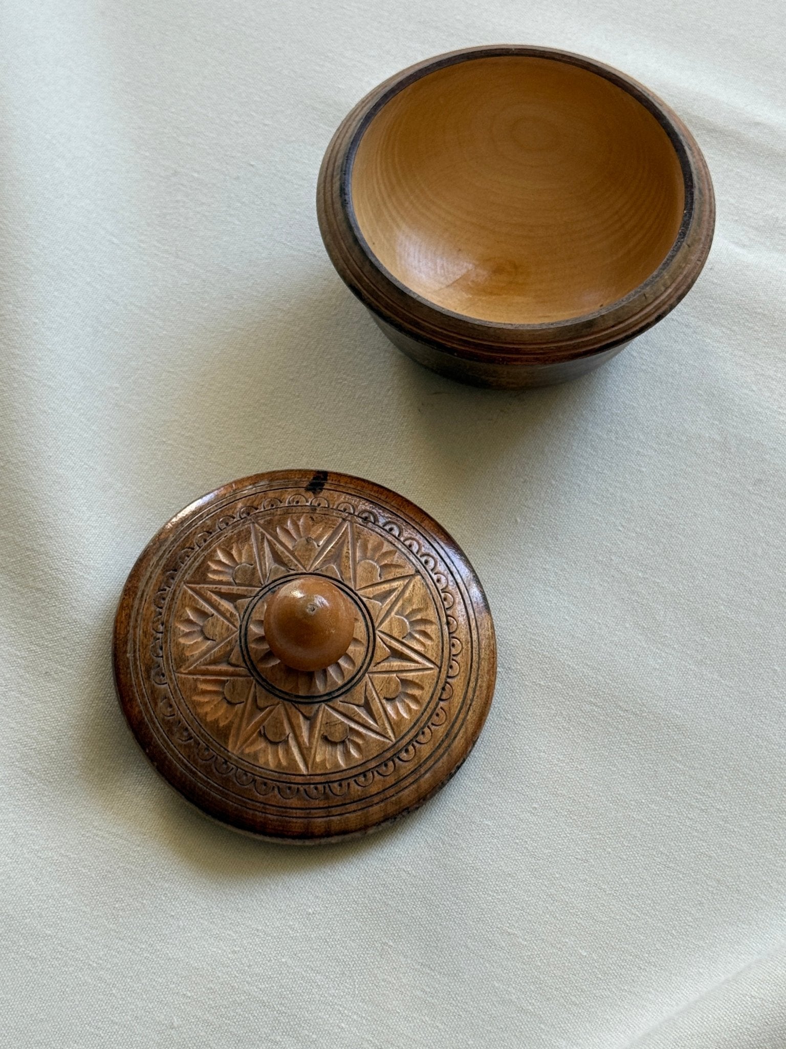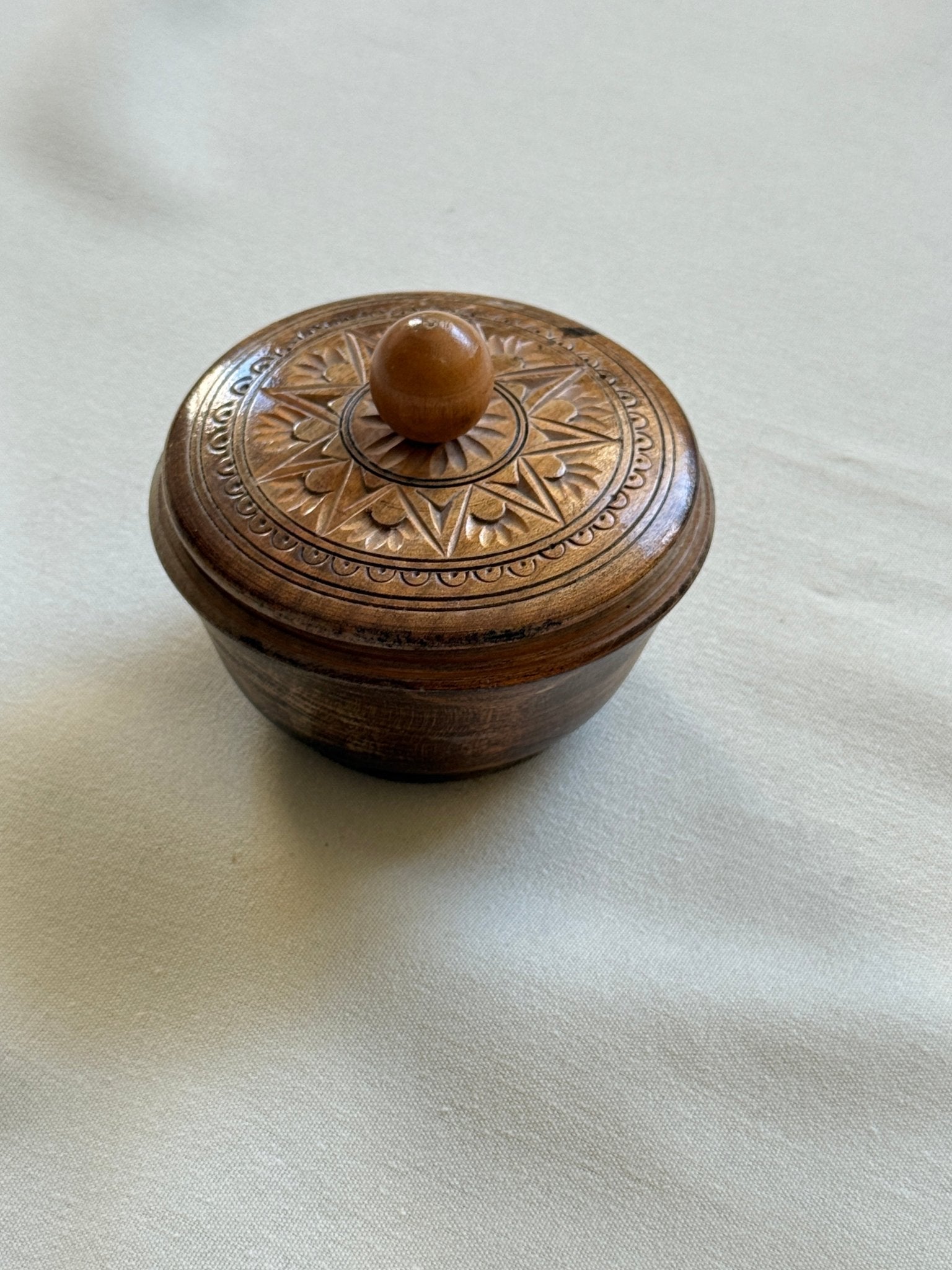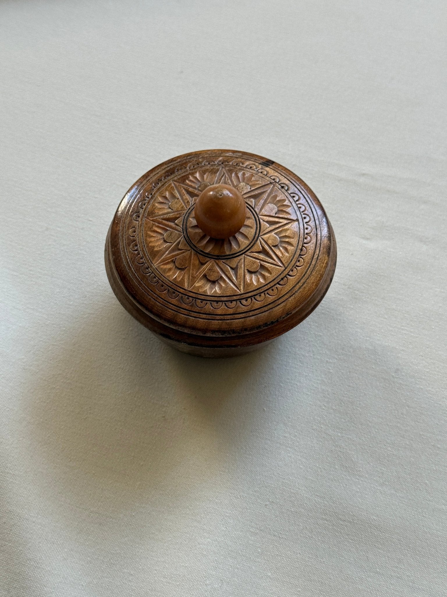 Wooden bonbonniere with carvings. In very good vintage condition.