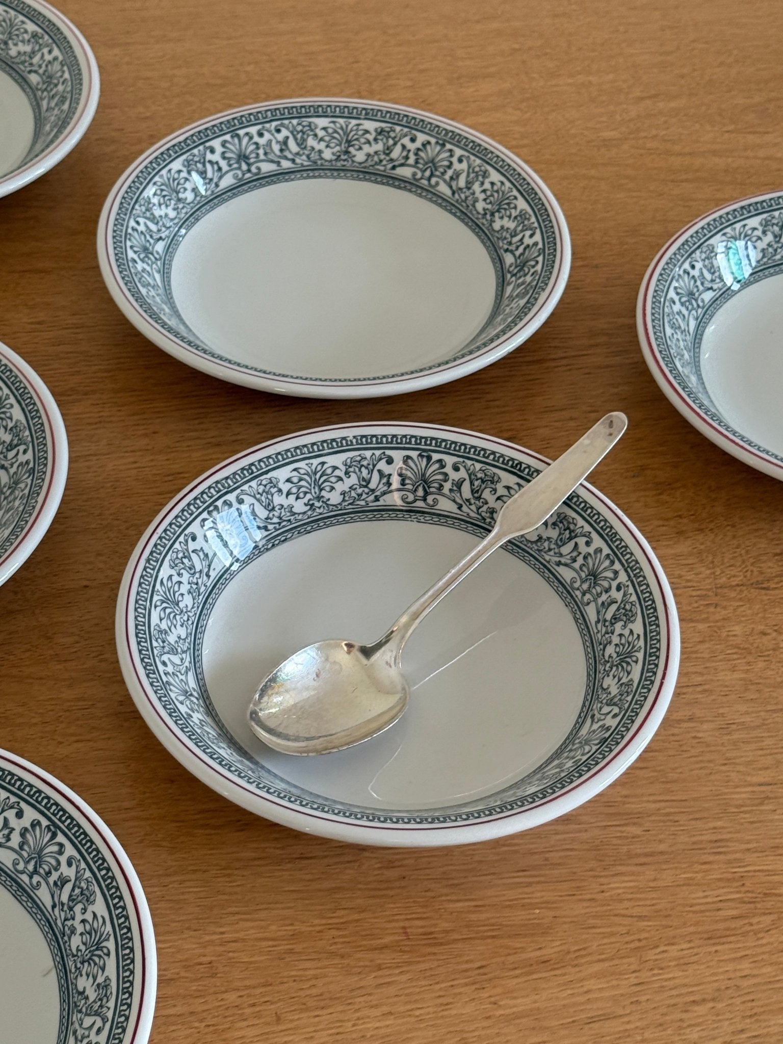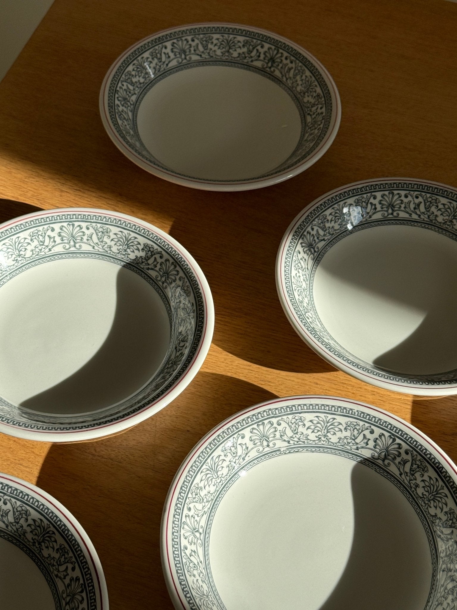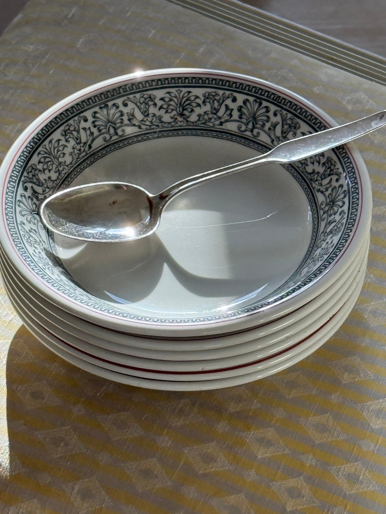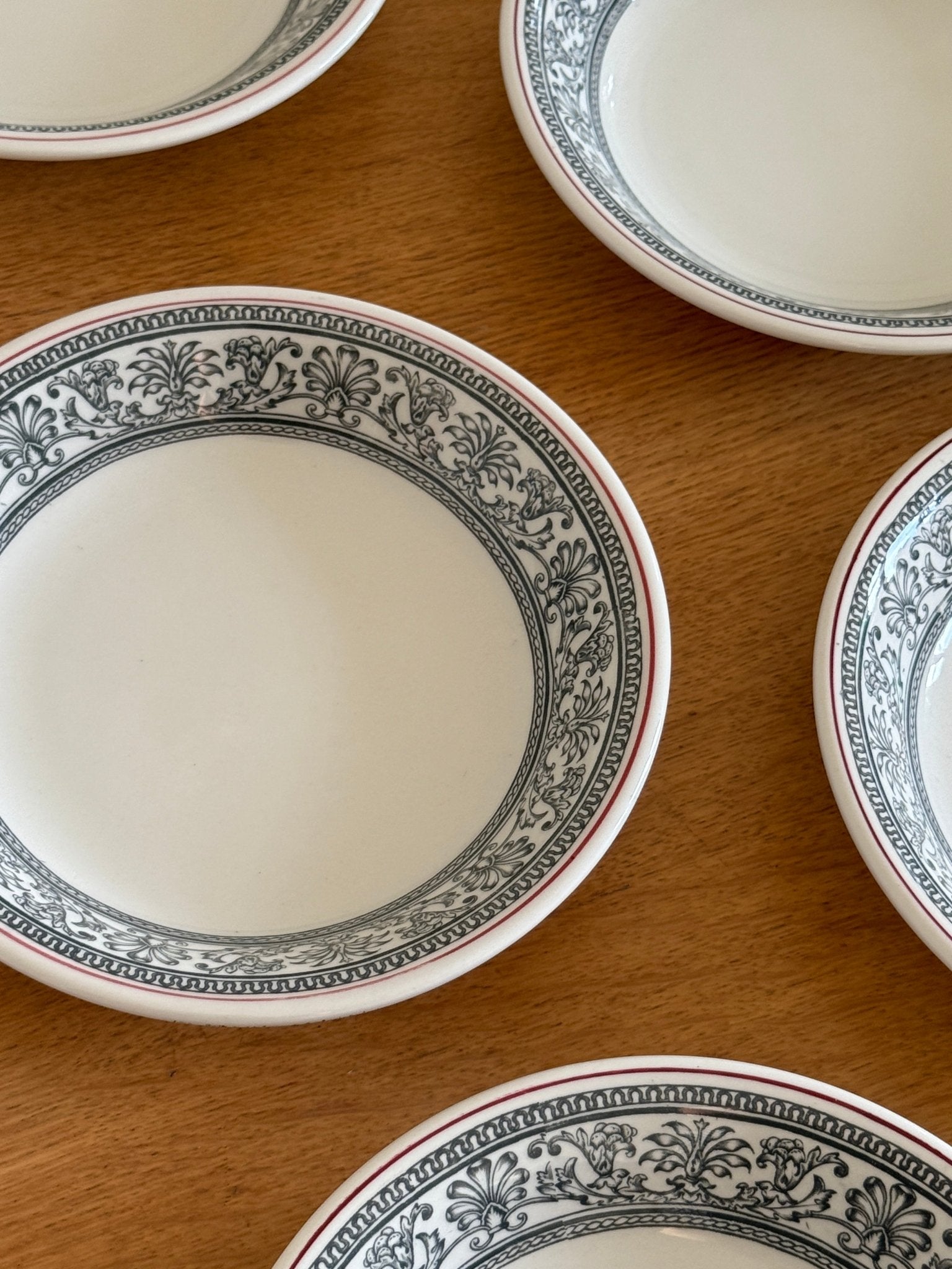 Red striped breakfast bowls with floral pattern. England. 12 pcs available. In excellent condition.