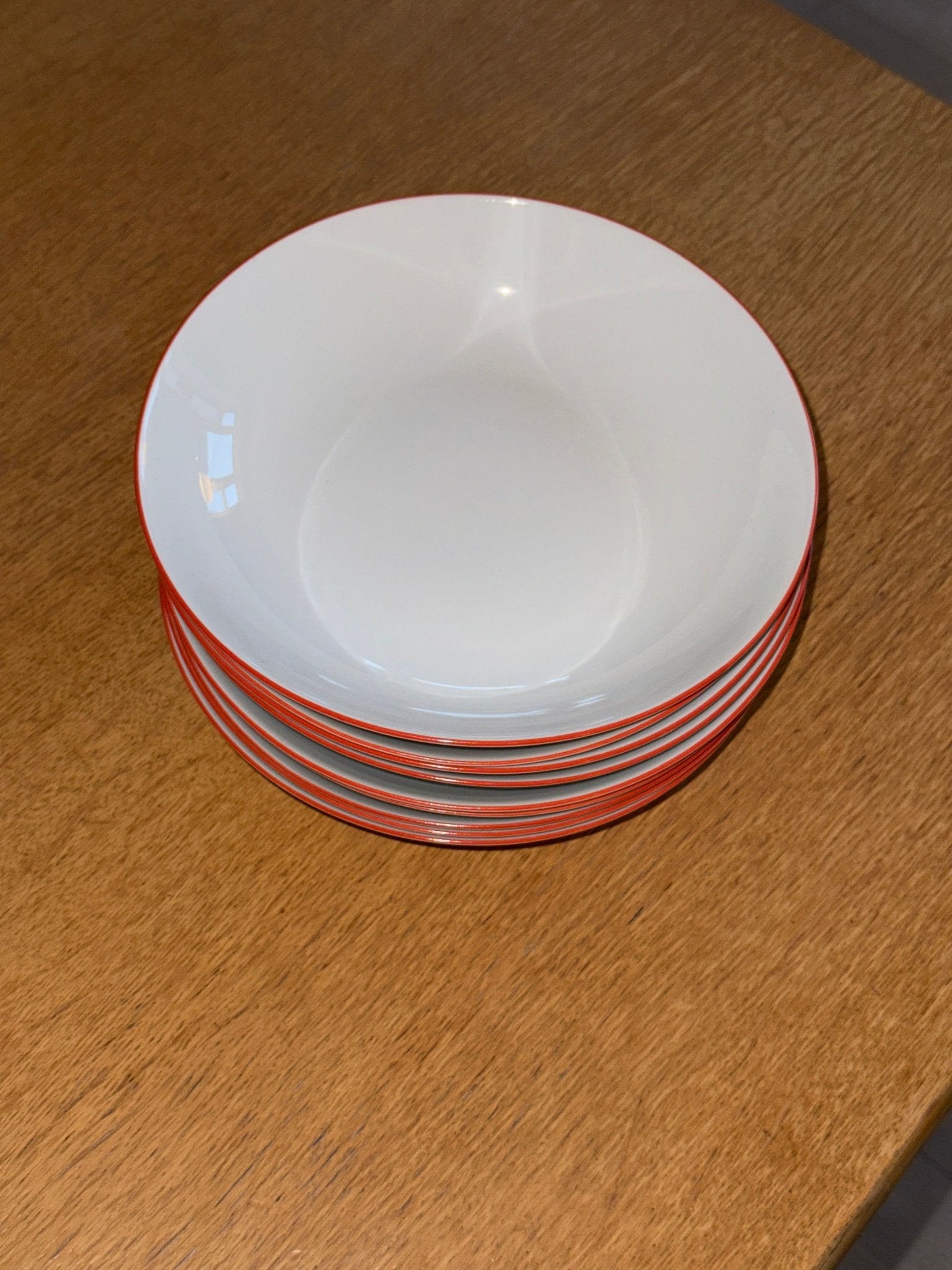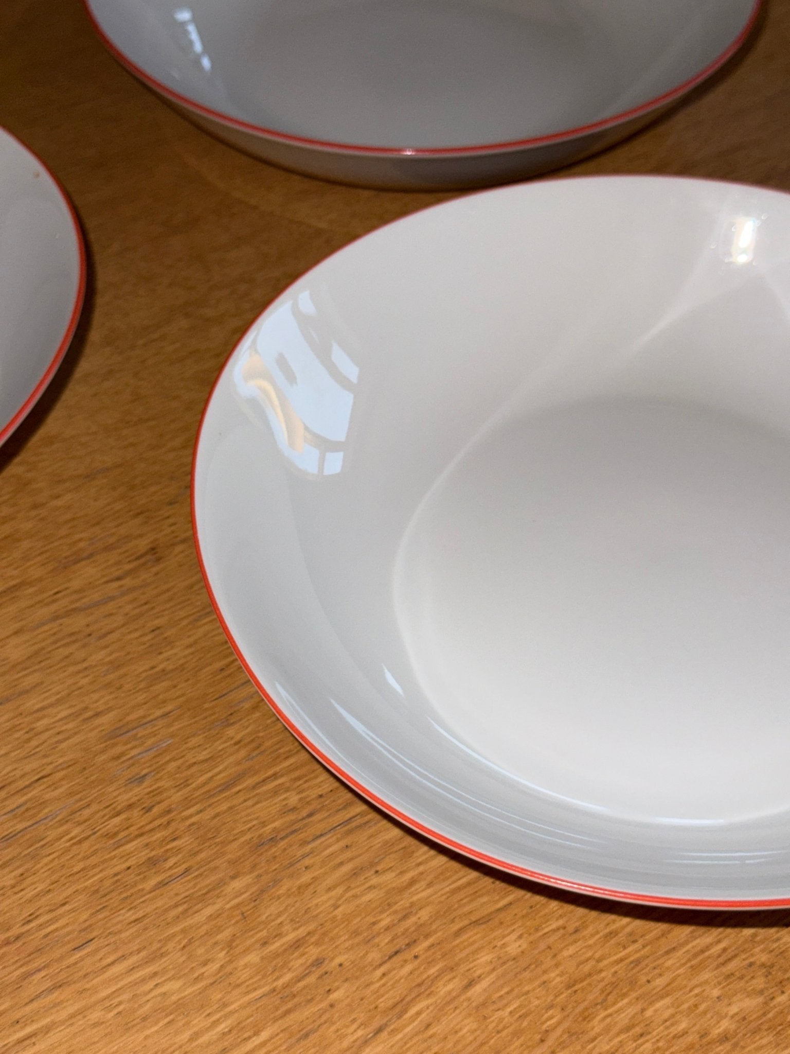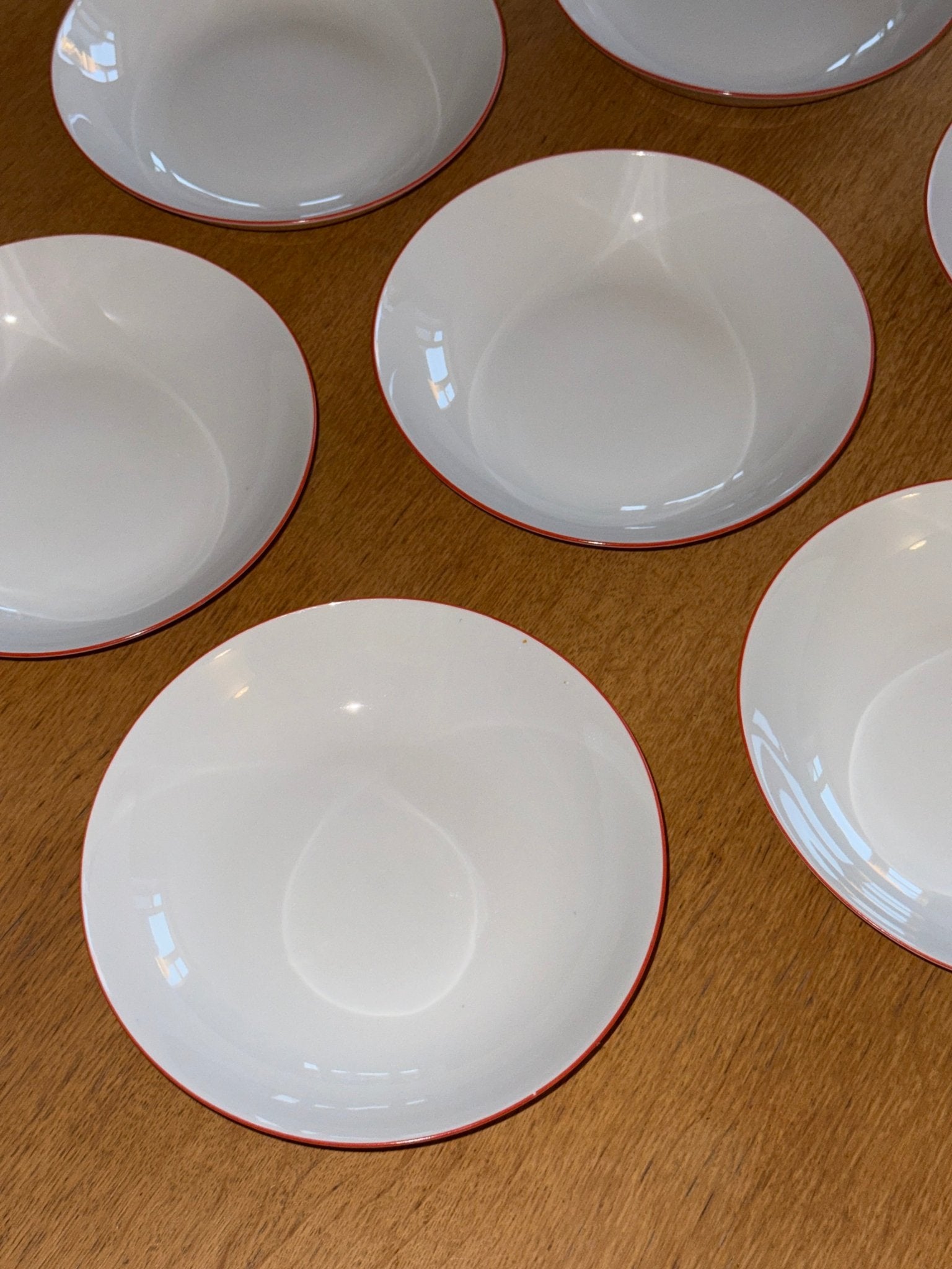 Red rim pasta plates. 9 pcs available, in mint condition. Price is per piece.