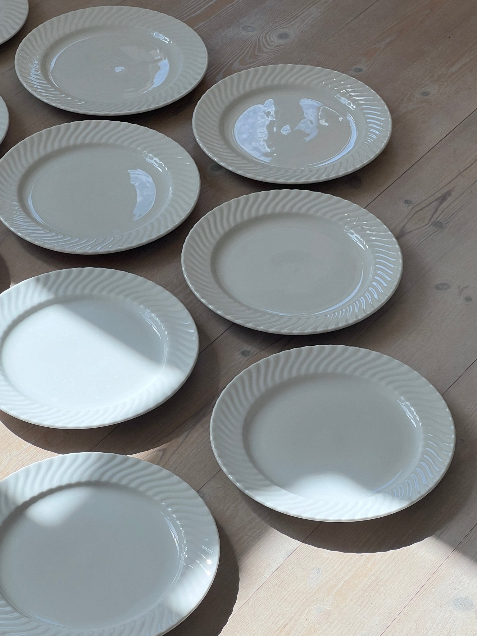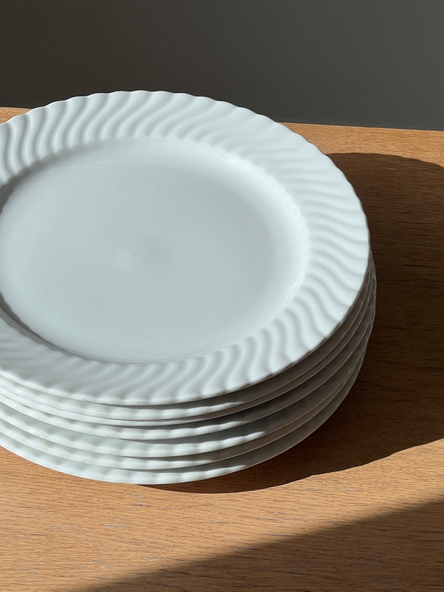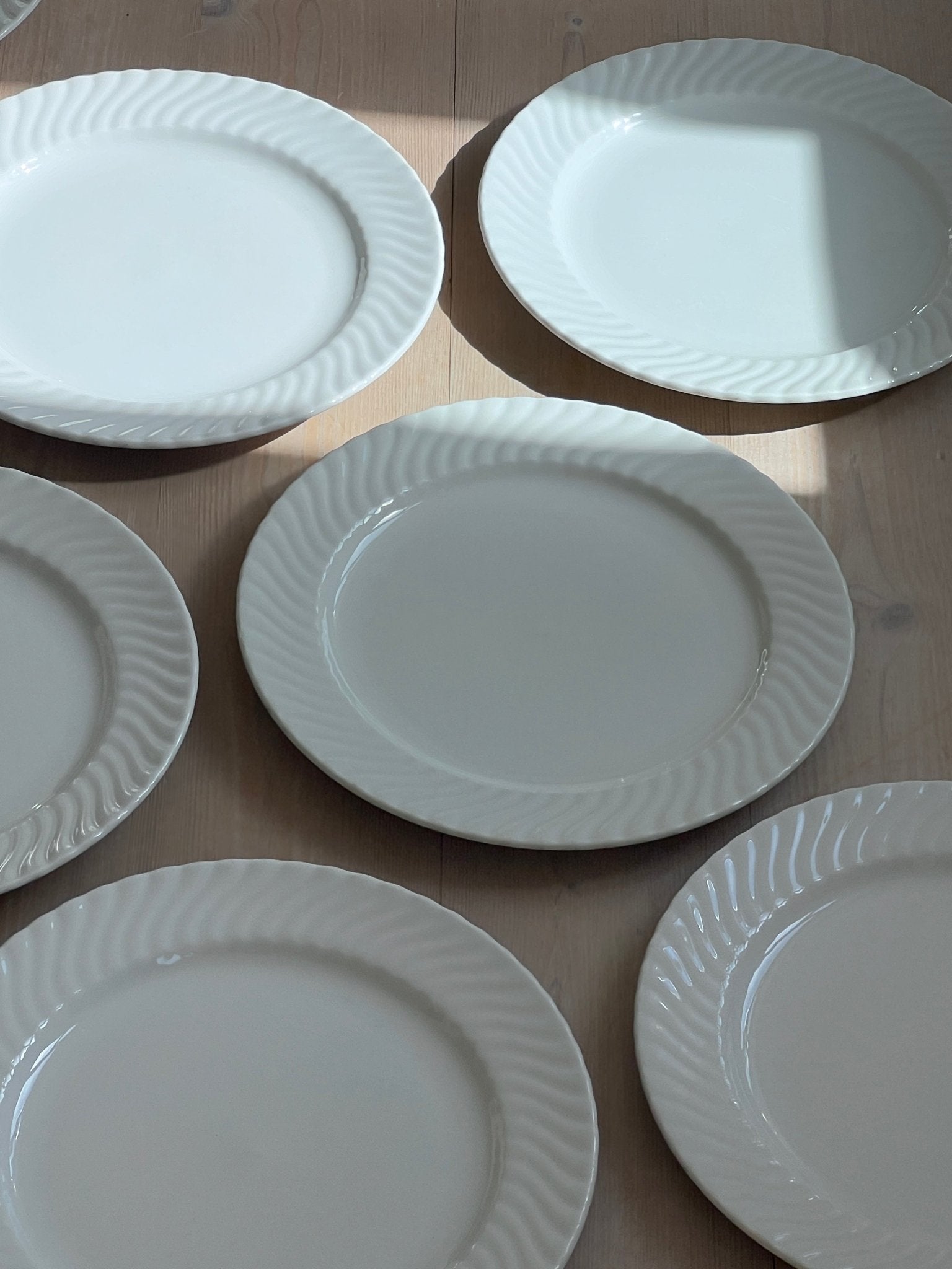 Large swirl dinner plates. 8 pcs left. In very good vintage condition.