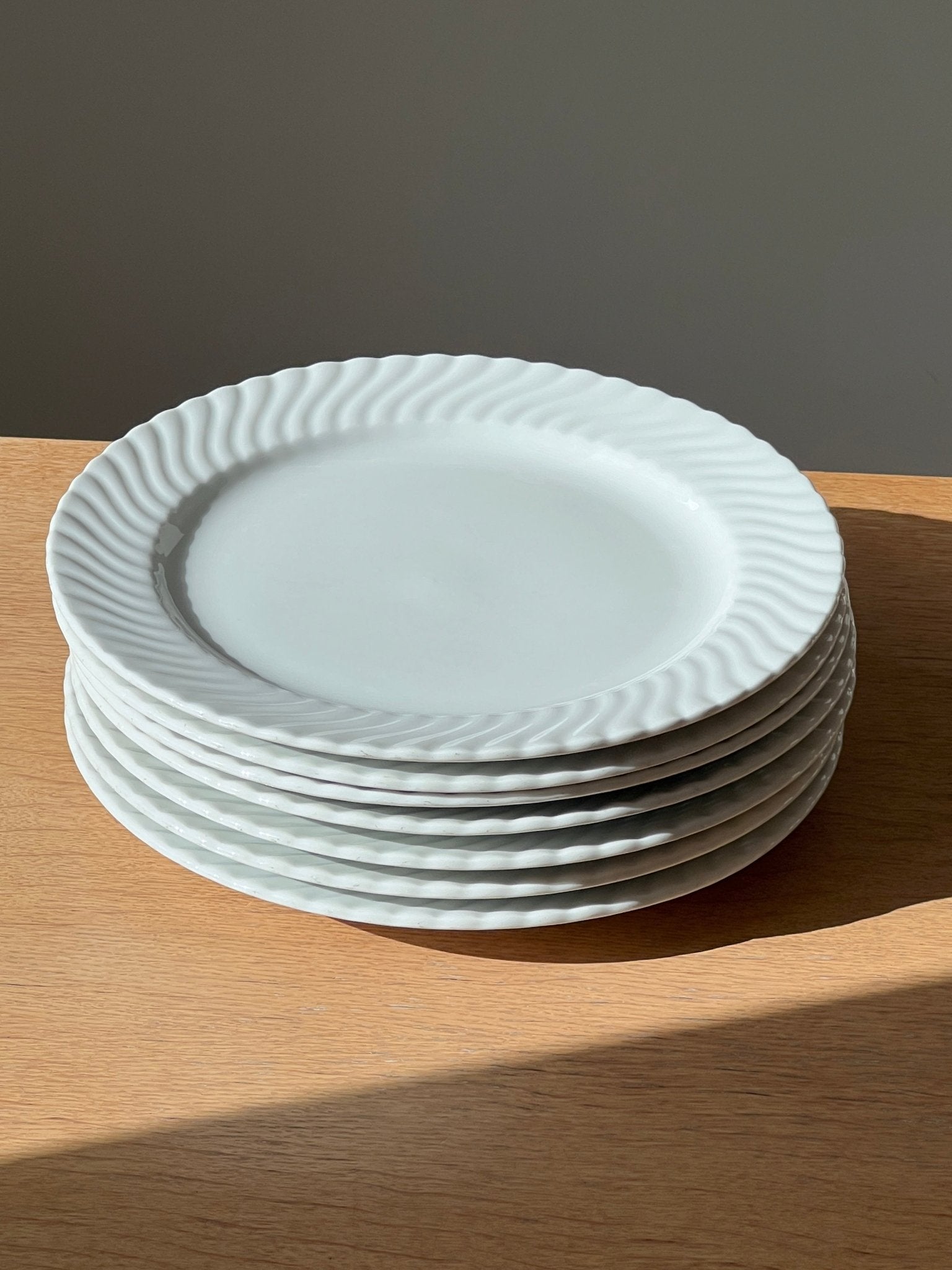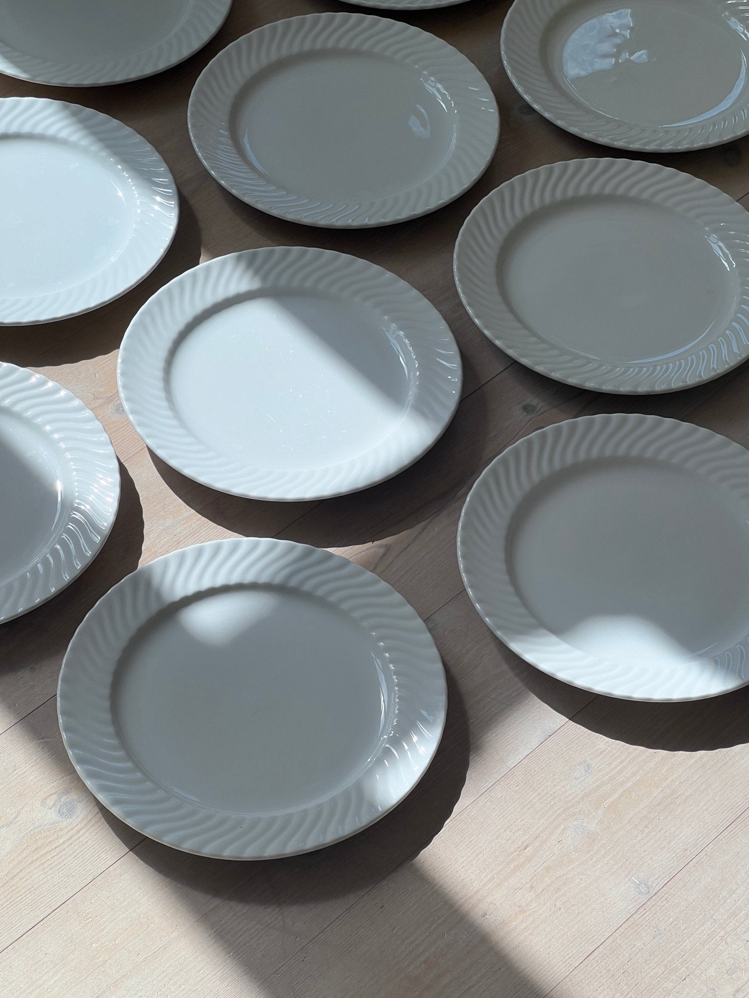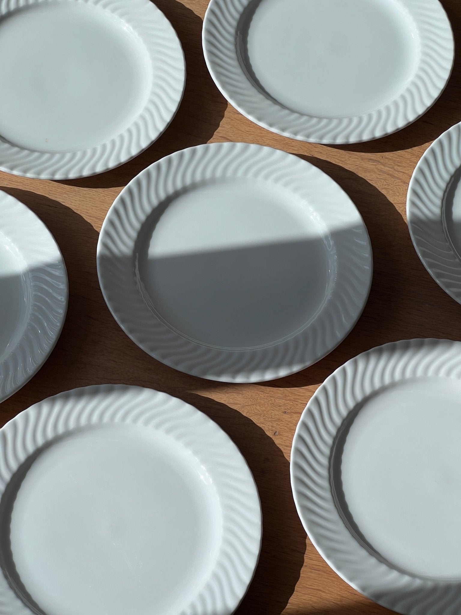 Large swirl dinner plates. 8 pcs left. In very good vintage condition.