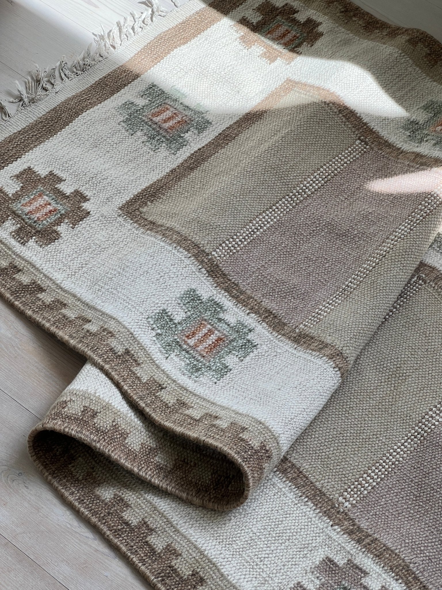 Gorgeous beige flatweave runner. Designed by Nils Nilsson in the 1950s. In excellent condition.