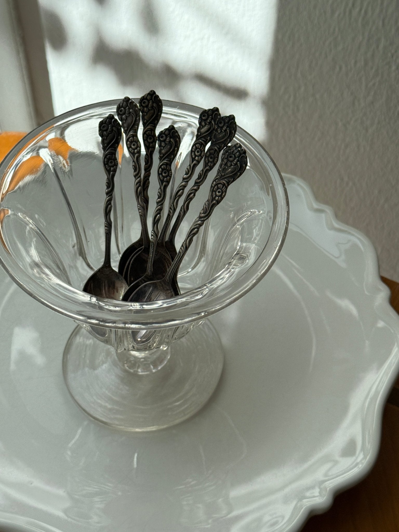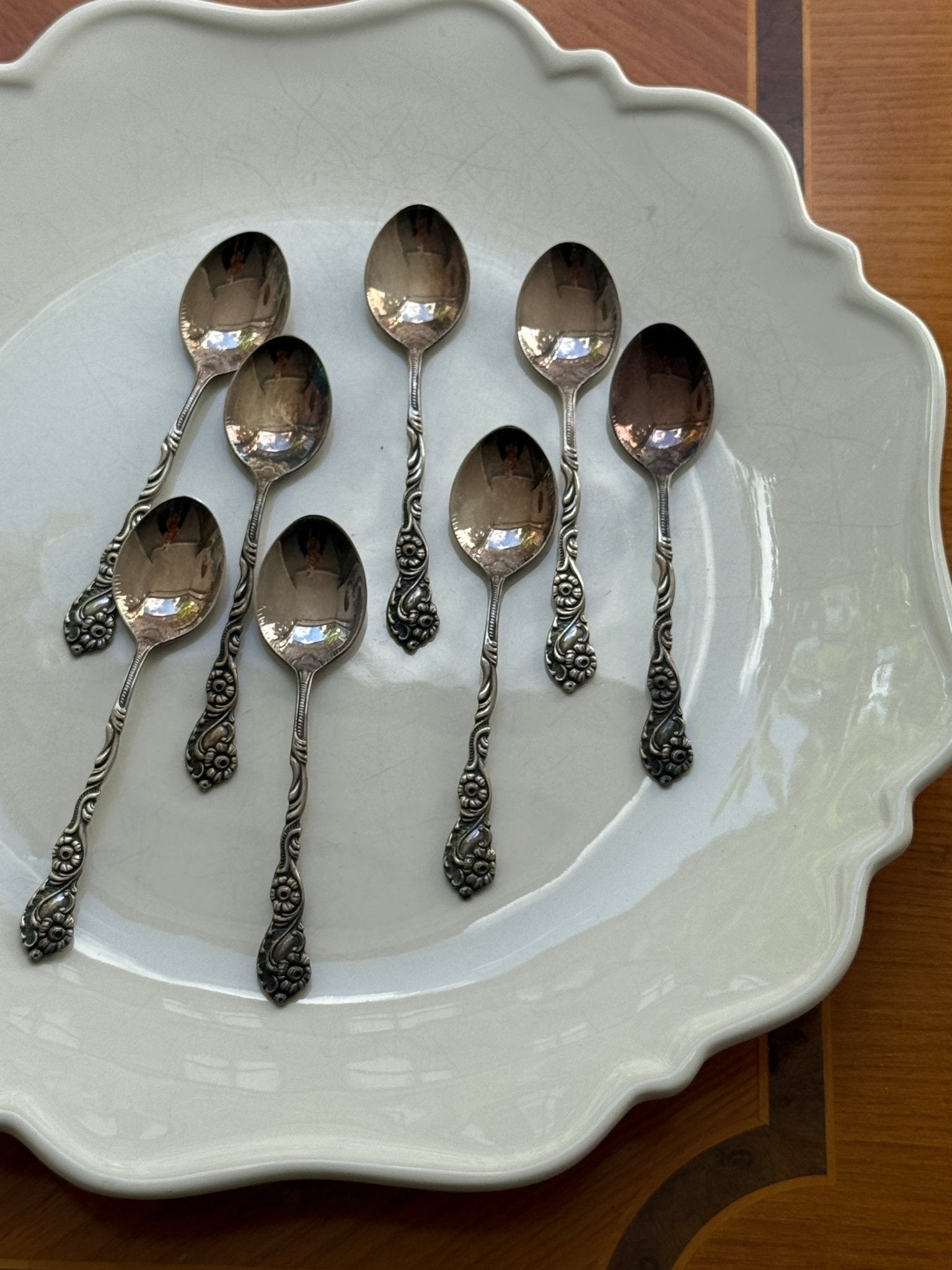 Beautiful small teaspoons with floral decoration. 10 pcs available, price is per piece.