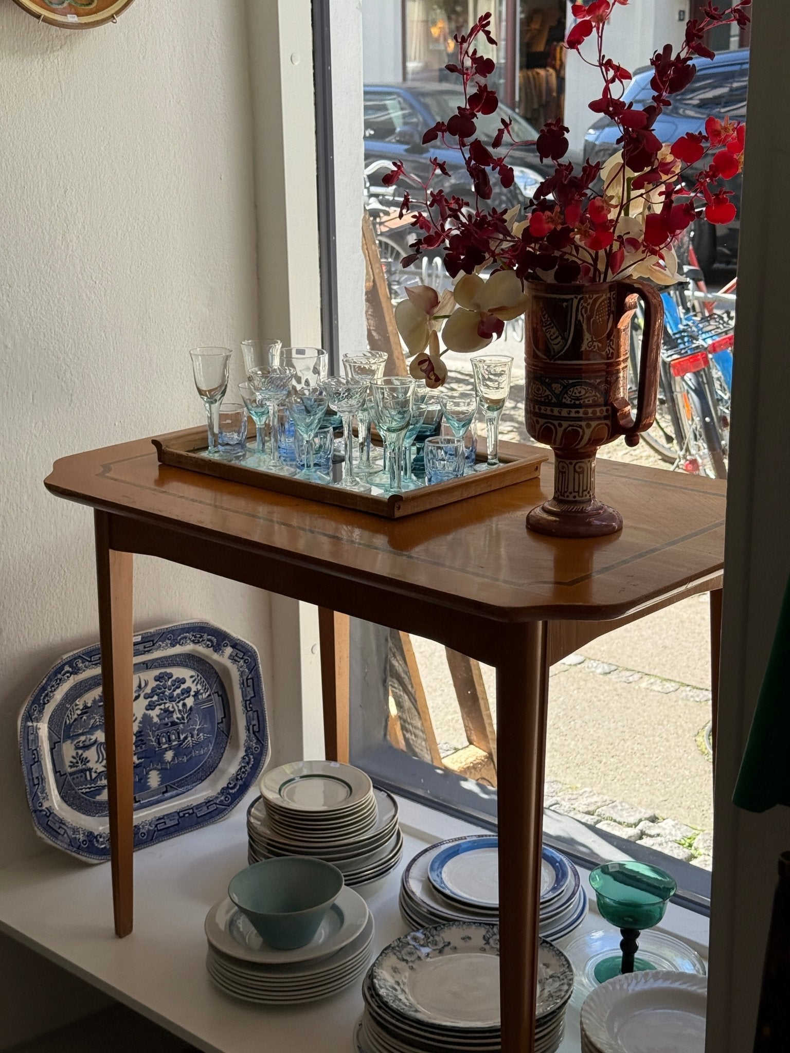 Amazing console table in wood with soft corners and beautiful details. Patina appears as seen in the photos. Pick-up only.
