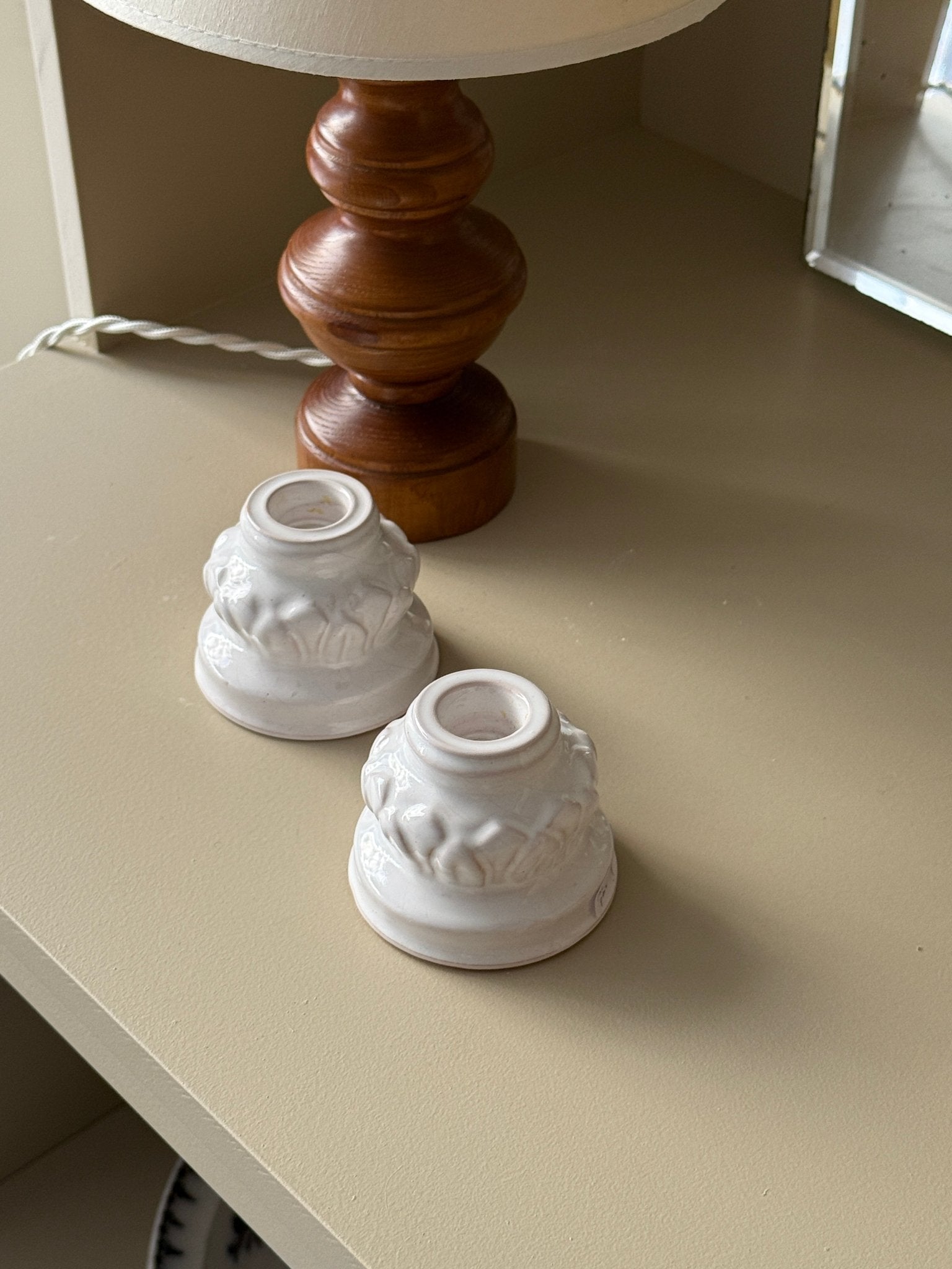 L. Hjorth white ceramic candleholders. In very good vintage condition. Sold as a pair.