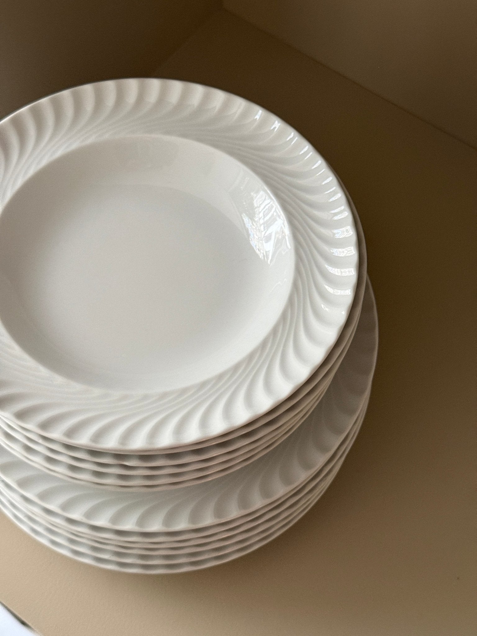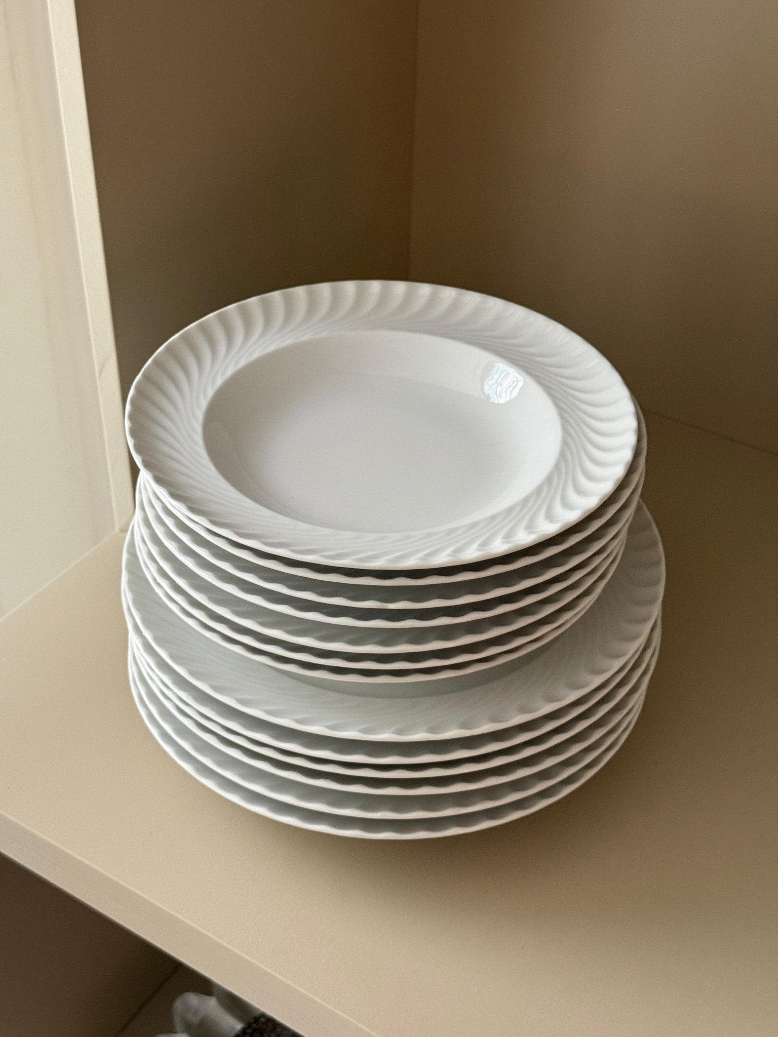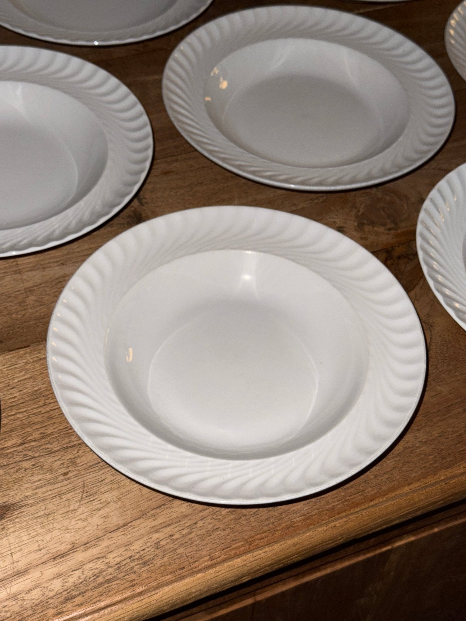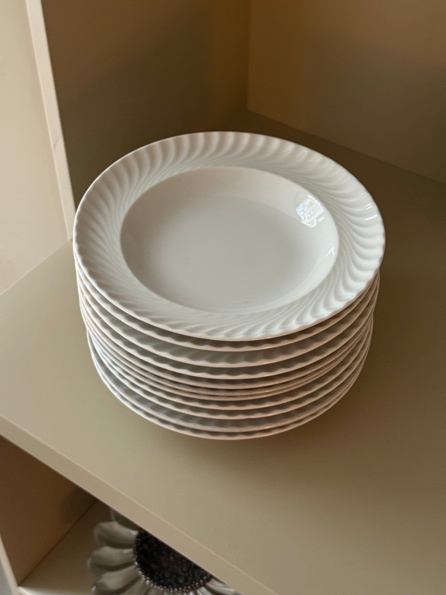 White swirl pasta plates. Italy. 3 pcs left, price is per piece. In excellent condition with only minimal signs of wear.