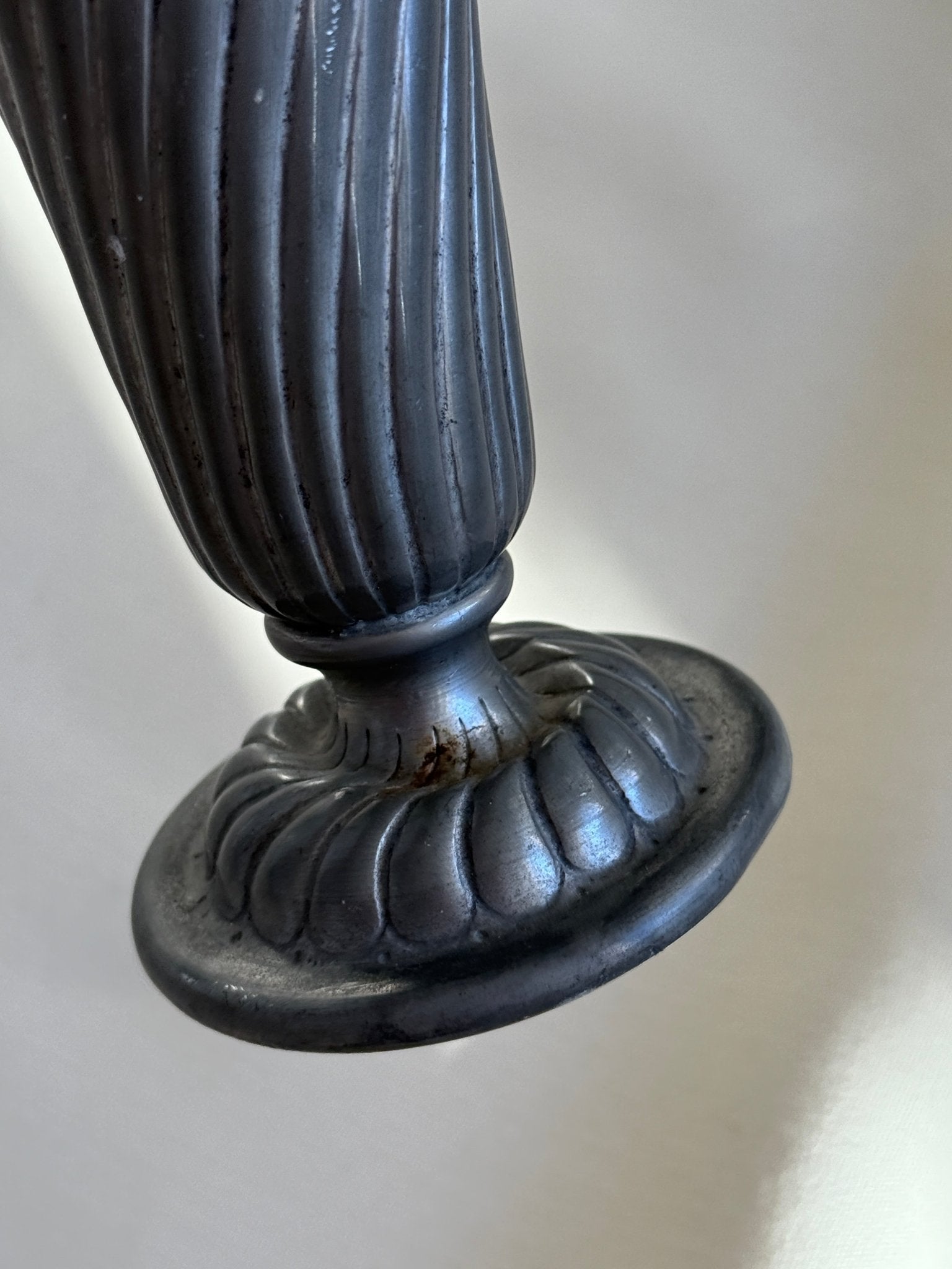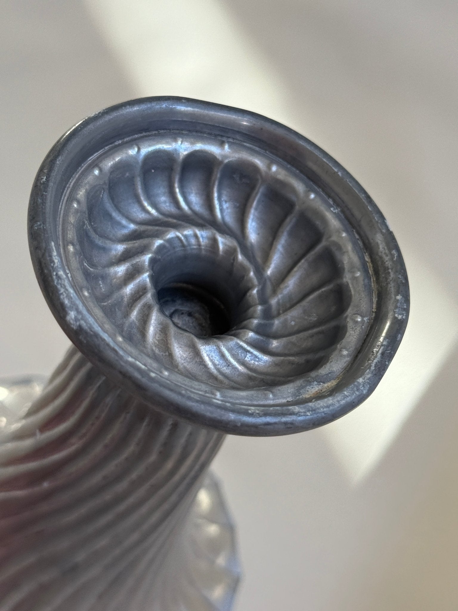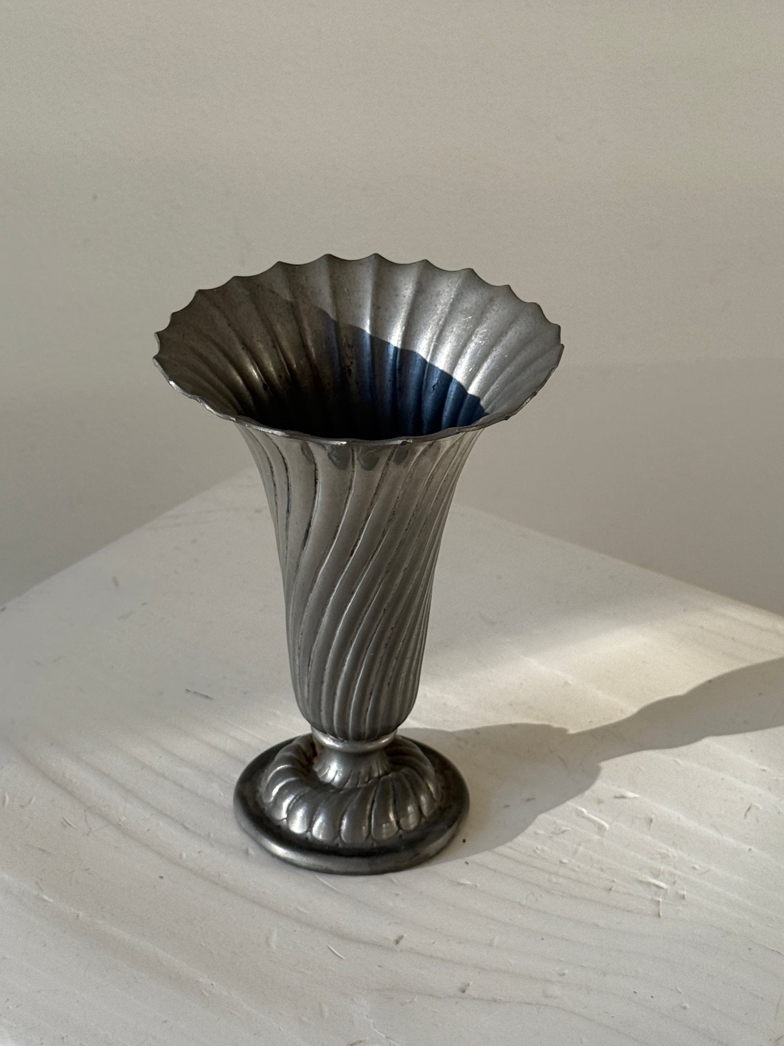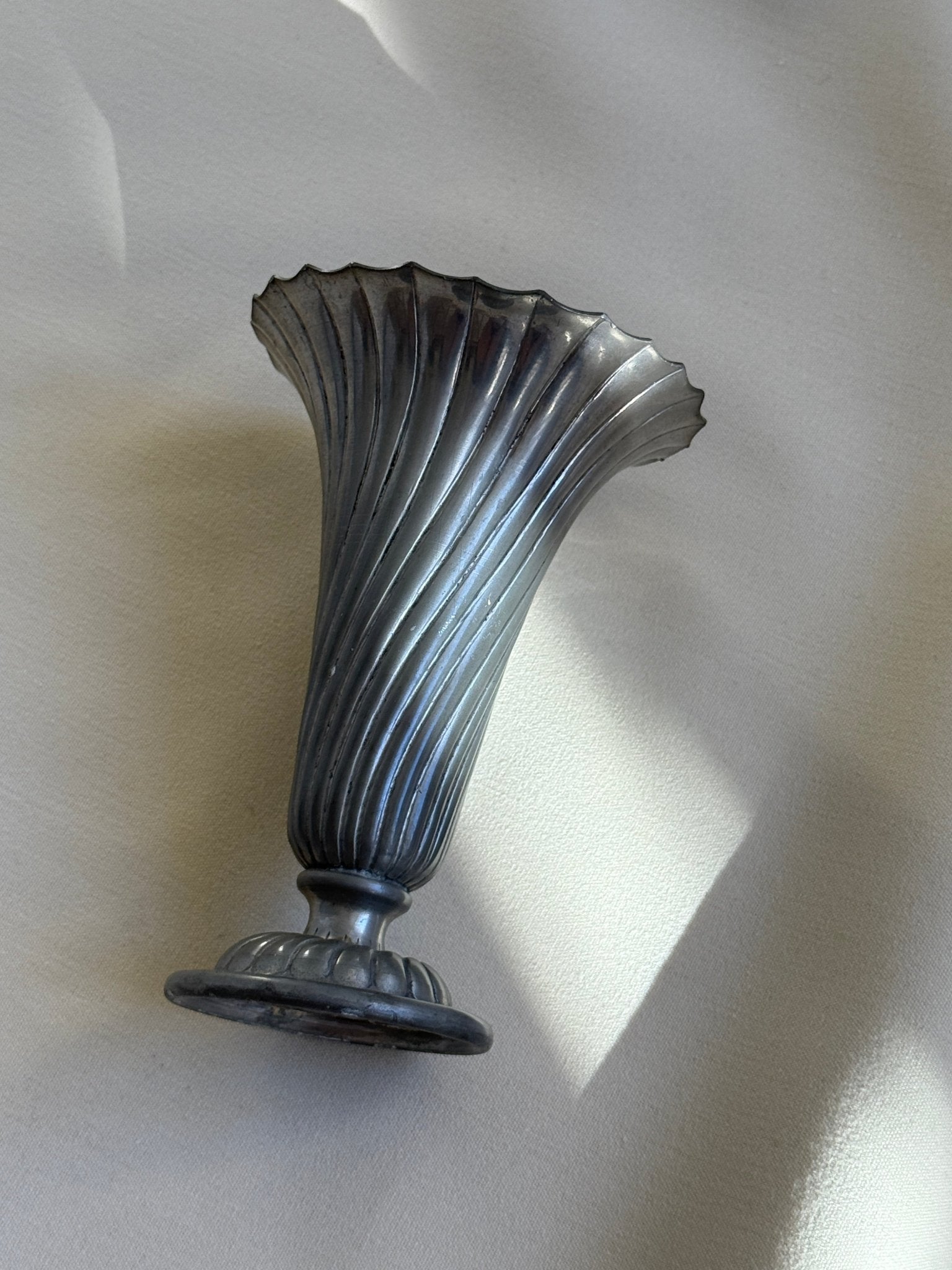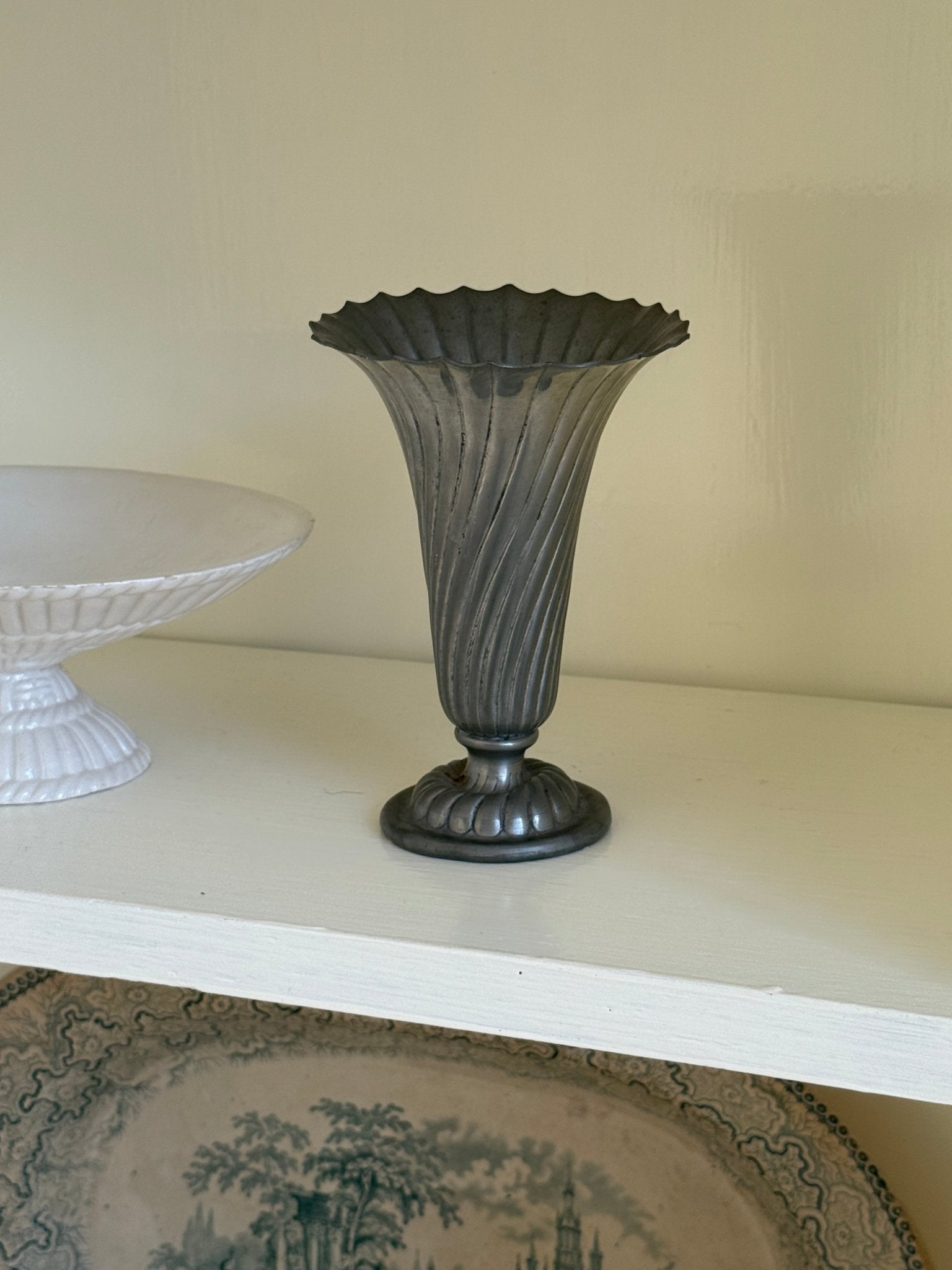Italian swirl pewter vase. Lots of patina, but still stands beautifully.
