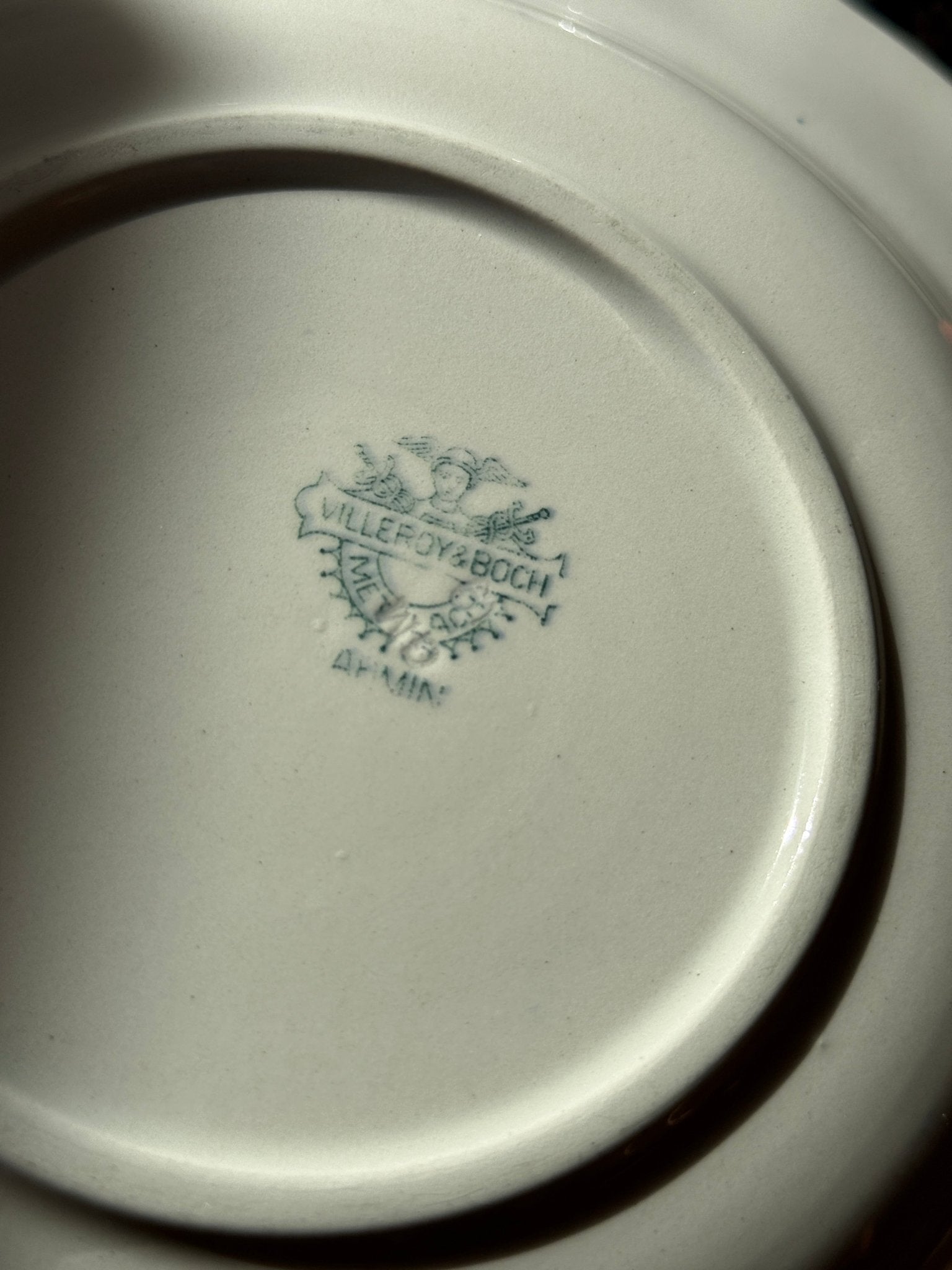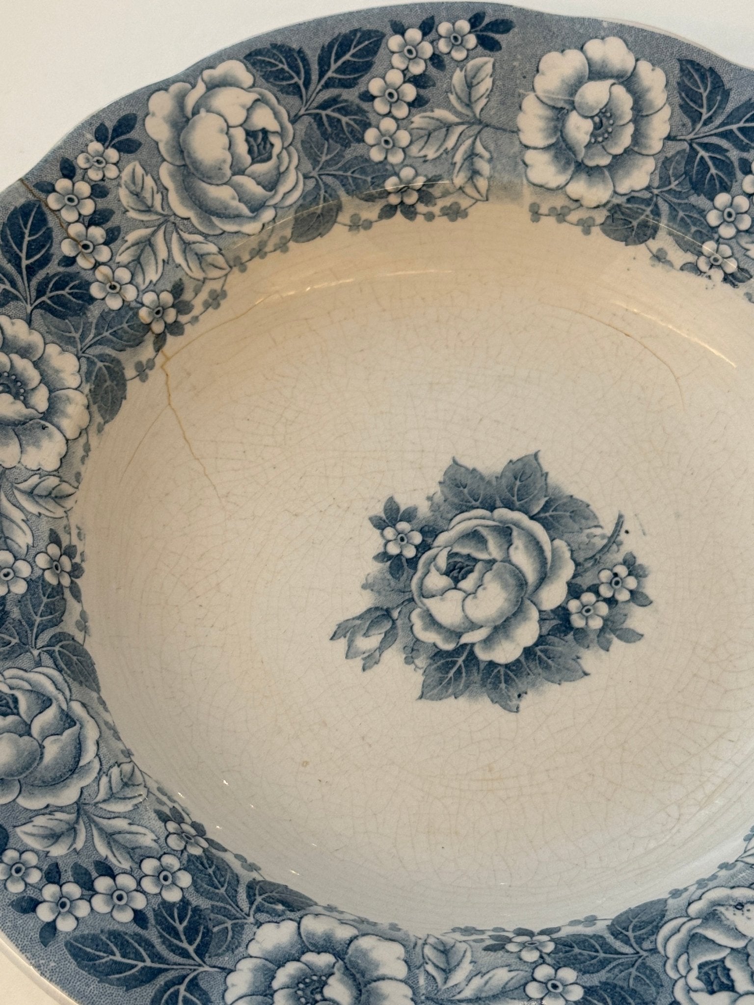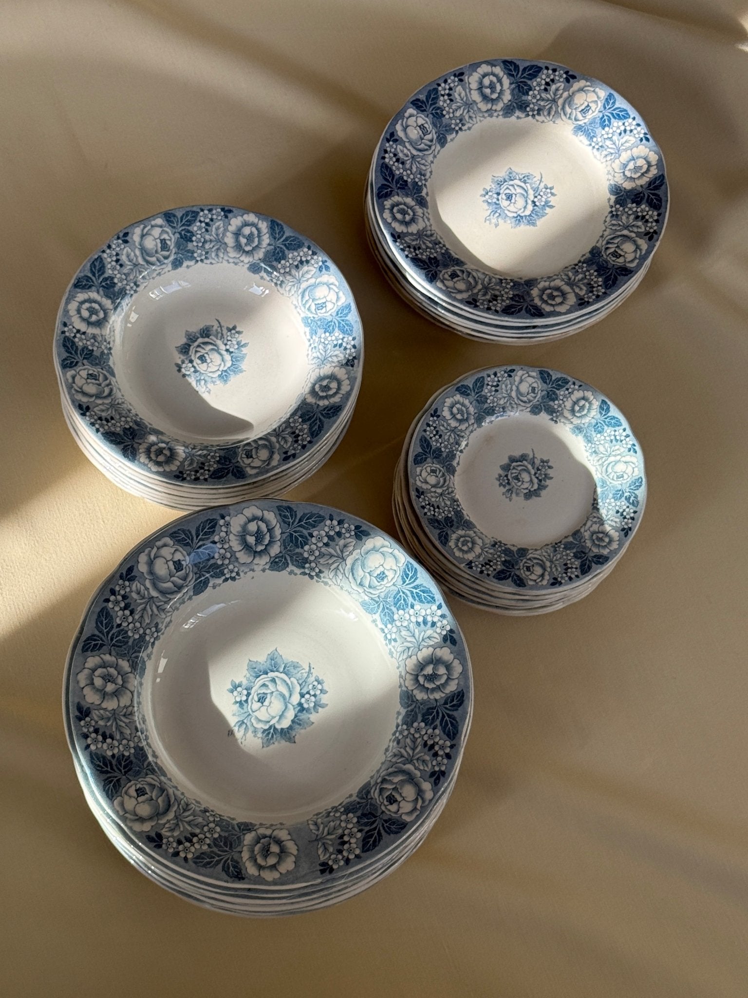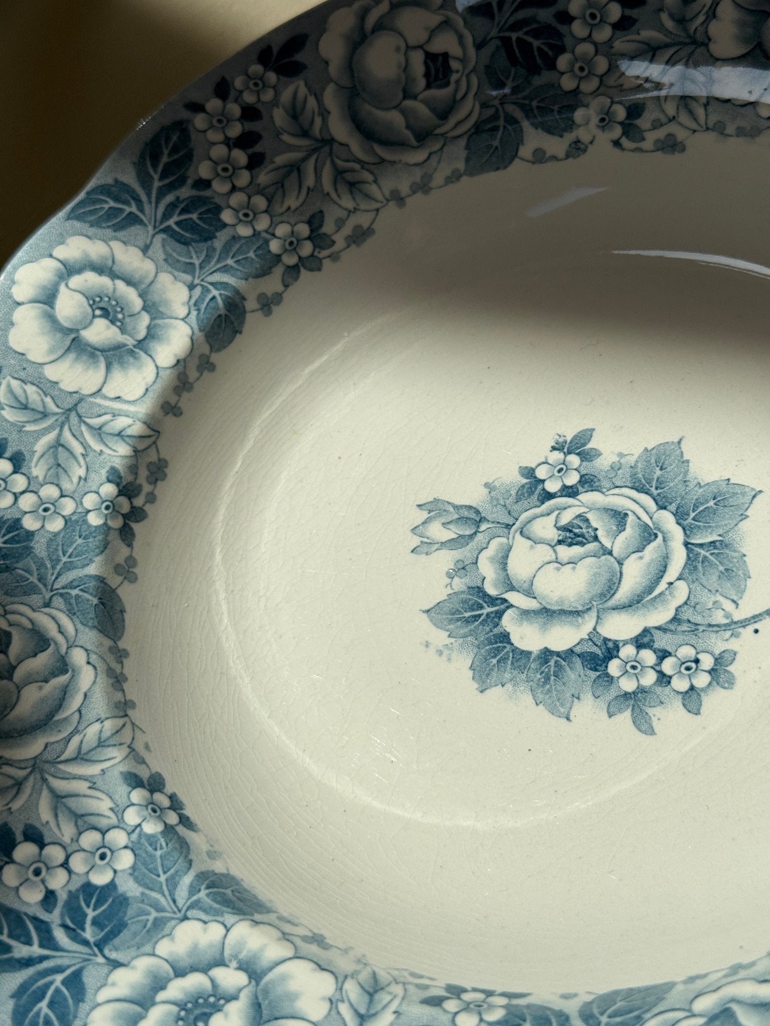 Blue floral pasta plates. Villeroy & Boch, Armin. 12 pcs available, price is per piece. This is an old faience set in very well-preserved condition. One plate has a thin hairline.