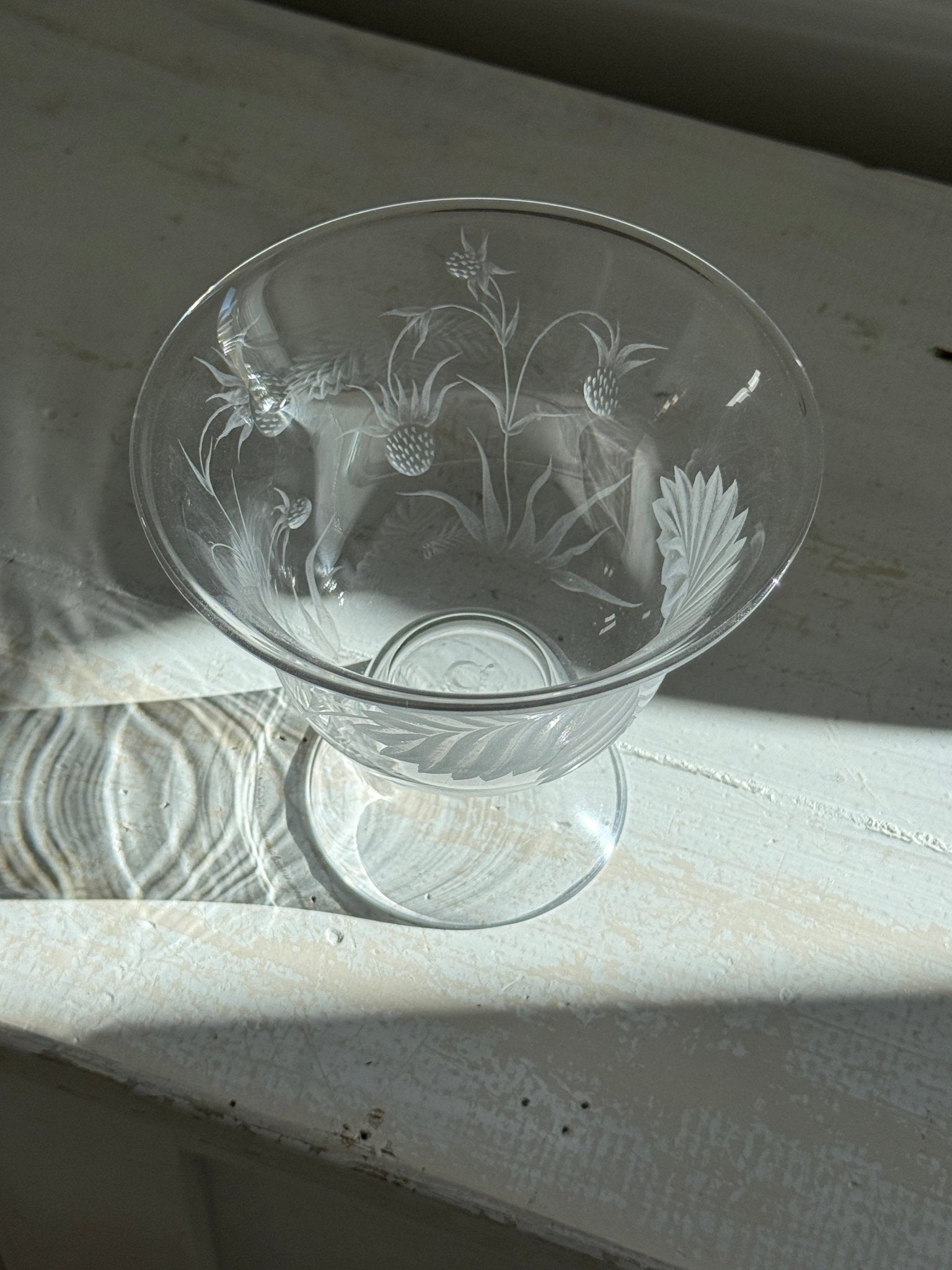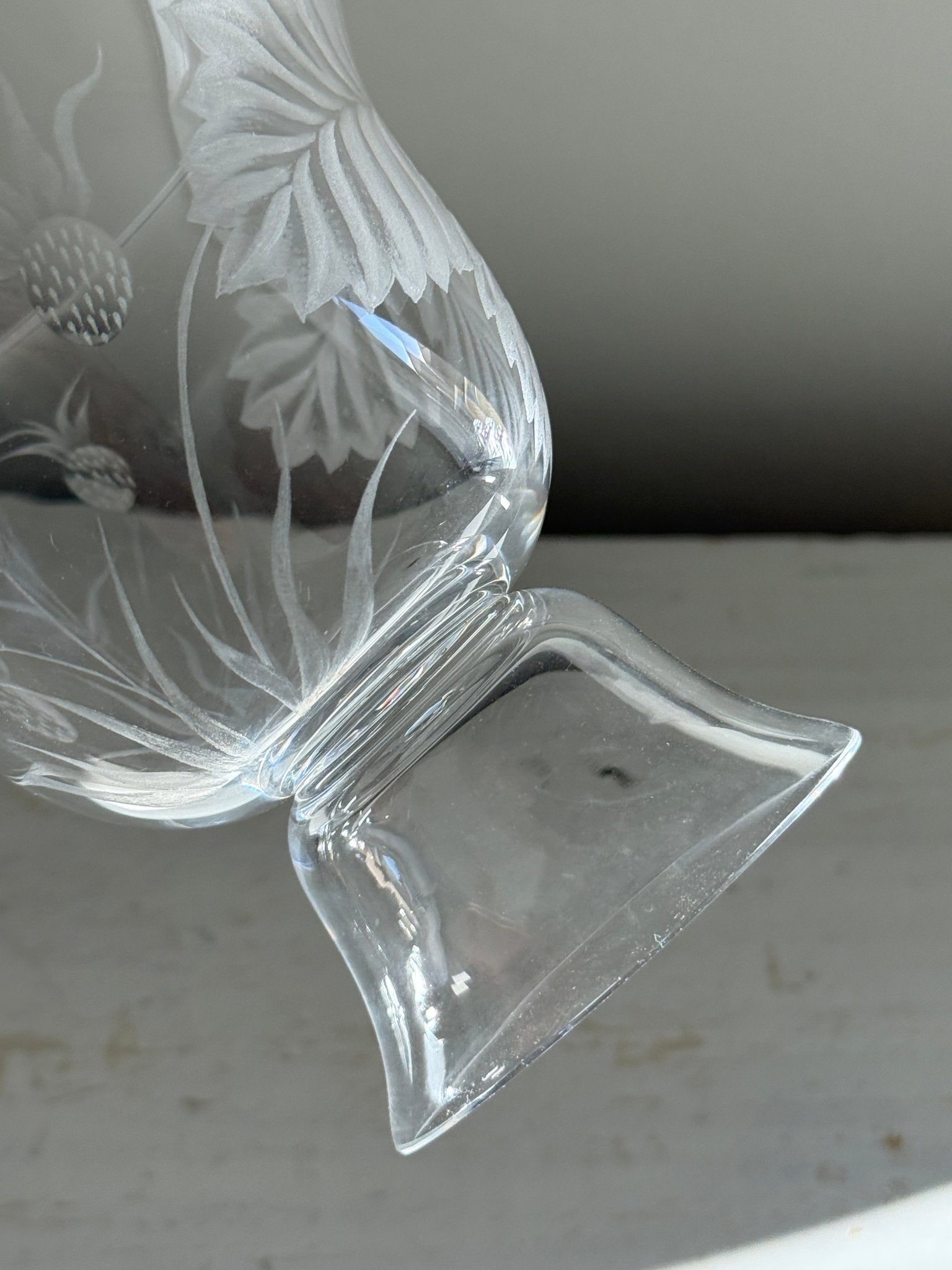 Beautiful footed glass vase. Excellent for a small bouquet of flowers or for serving snacks. In mint condition.