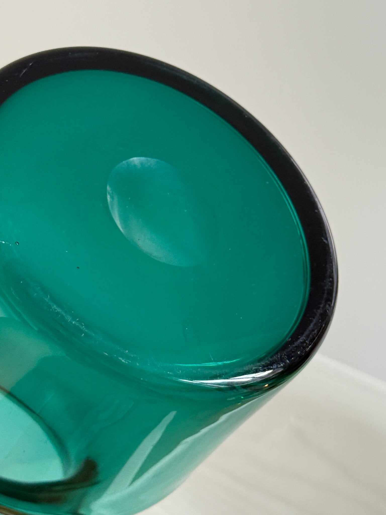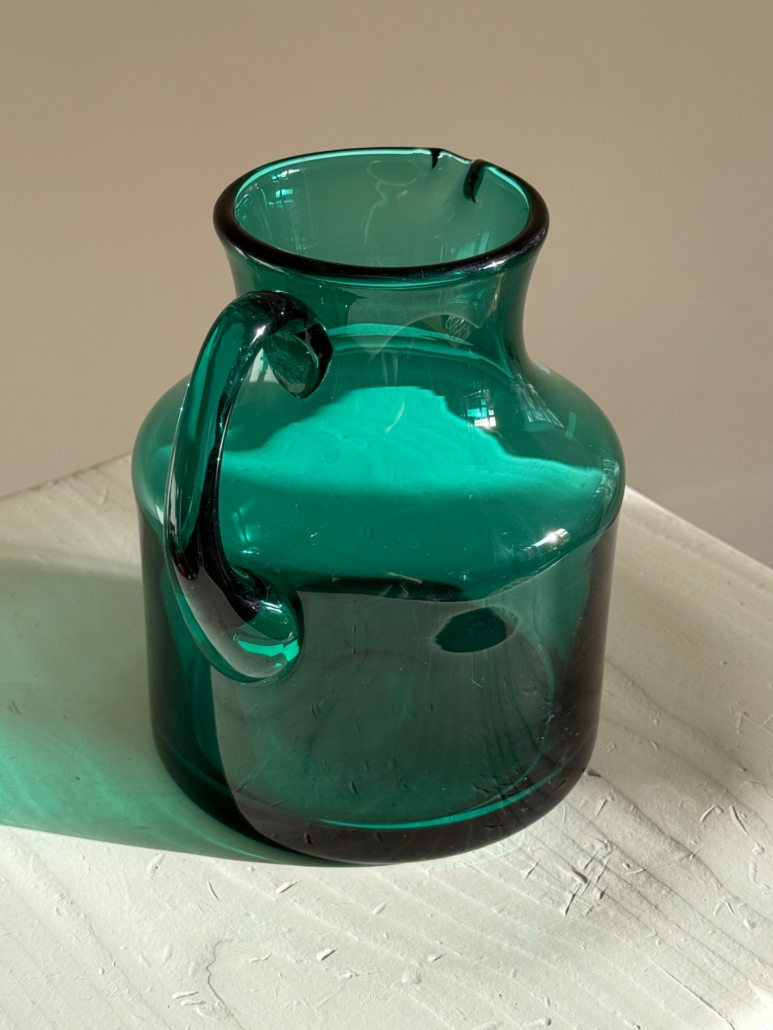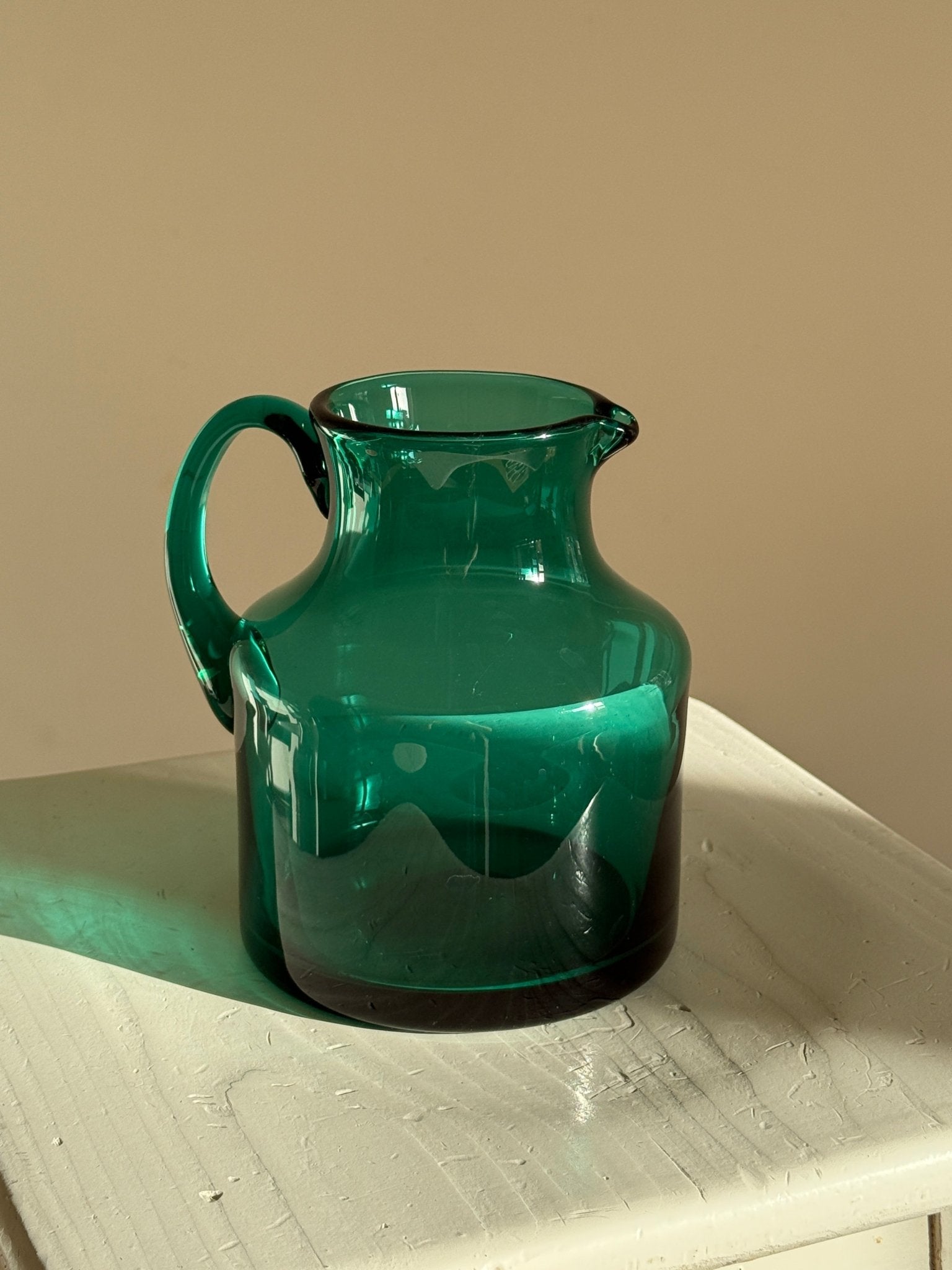 Stunning, turquoise glass pitcher. Mouth-blown. In mint condition.