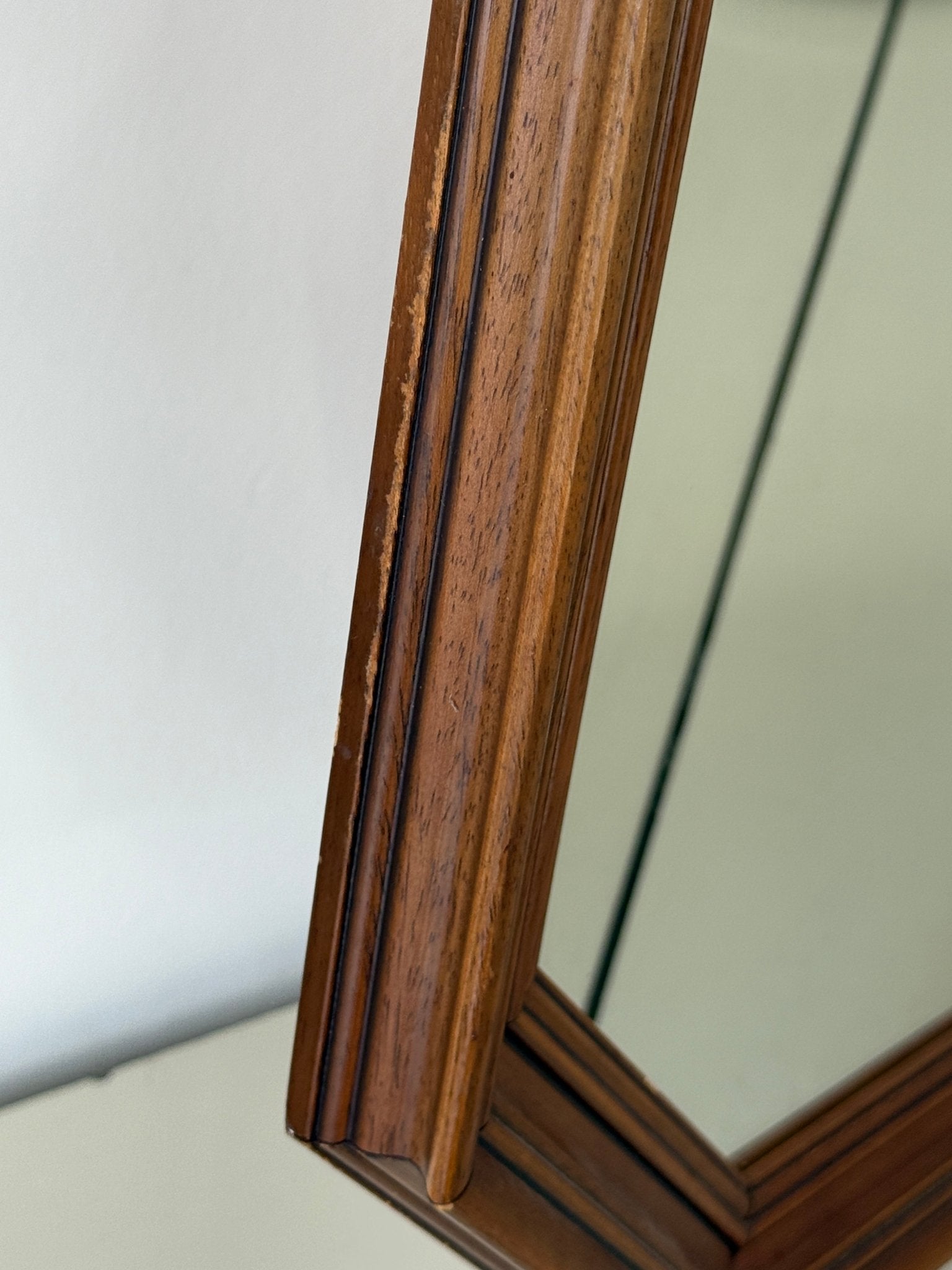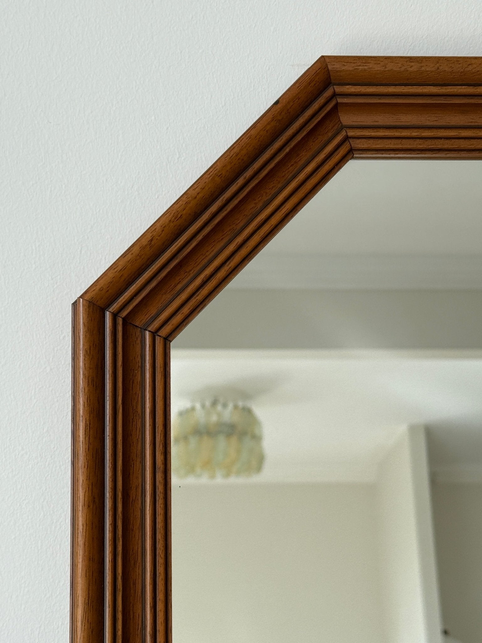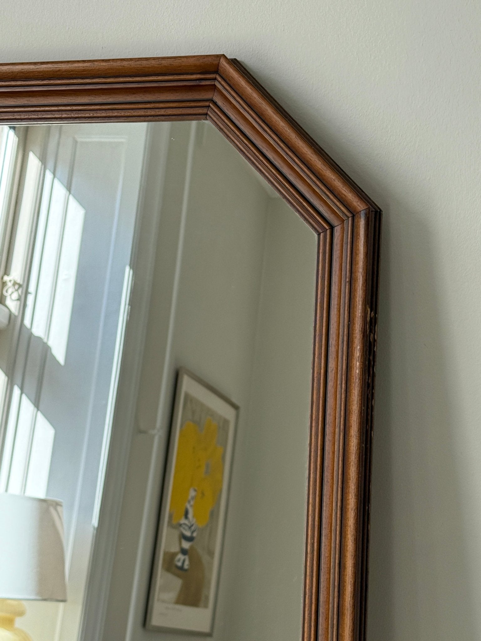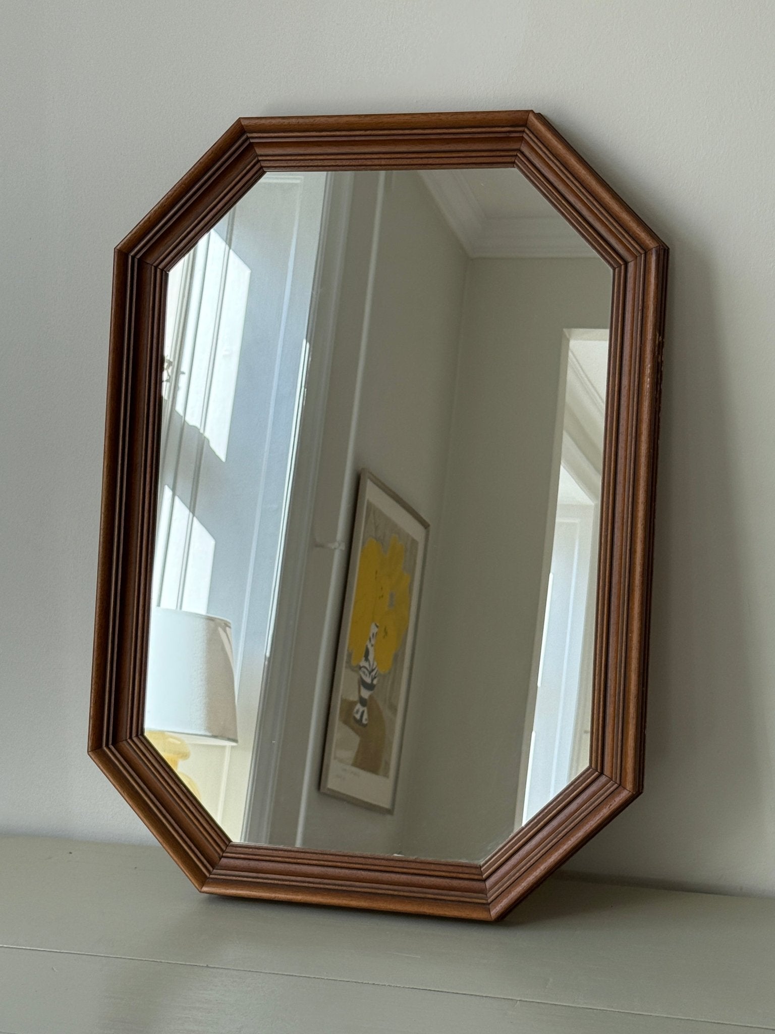 Stunning, wooden octagonal mirror. Minor wear on the right side, otherwise in excellent condition. Pick-up only.