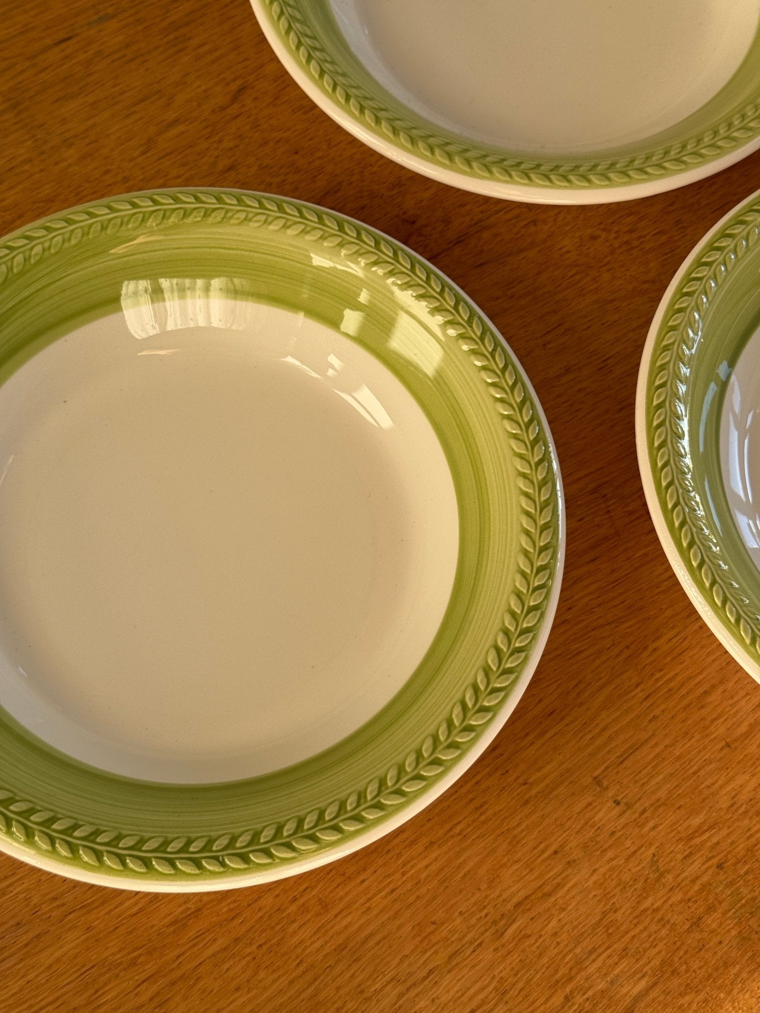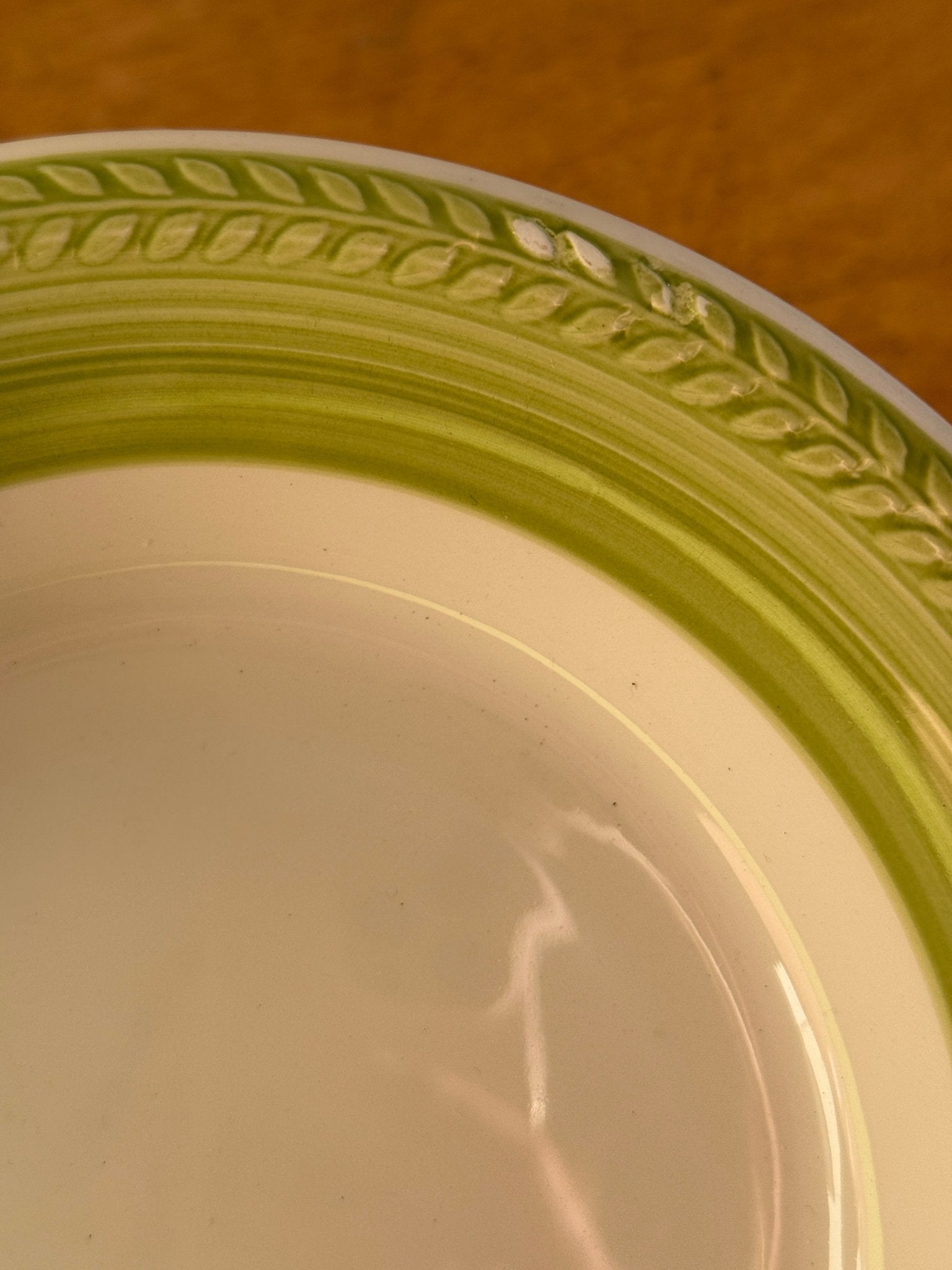 Green rim pasta plates. Italy. 10 pcs available. In mint condition — except for one plate with a tiny flaw on the rim.