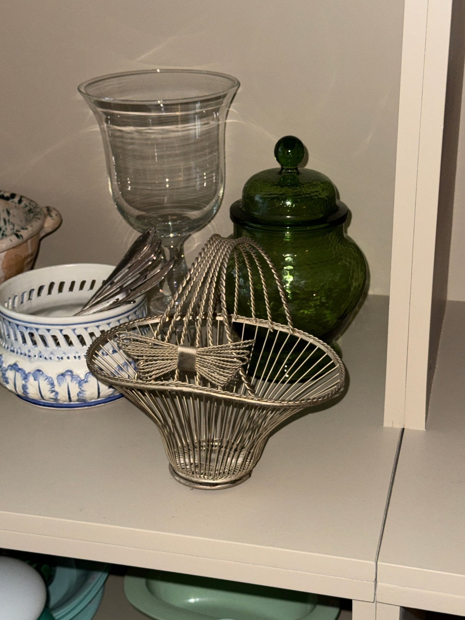 Silver plated basket with the cutest bow detail. Made in Italy. Slightly wobbly, otherwise in excellent condition.