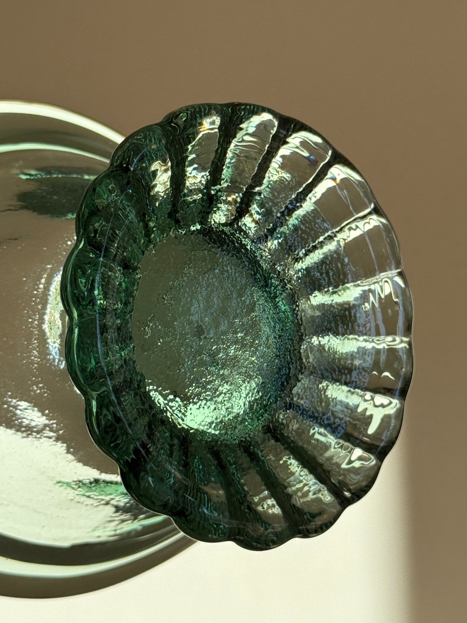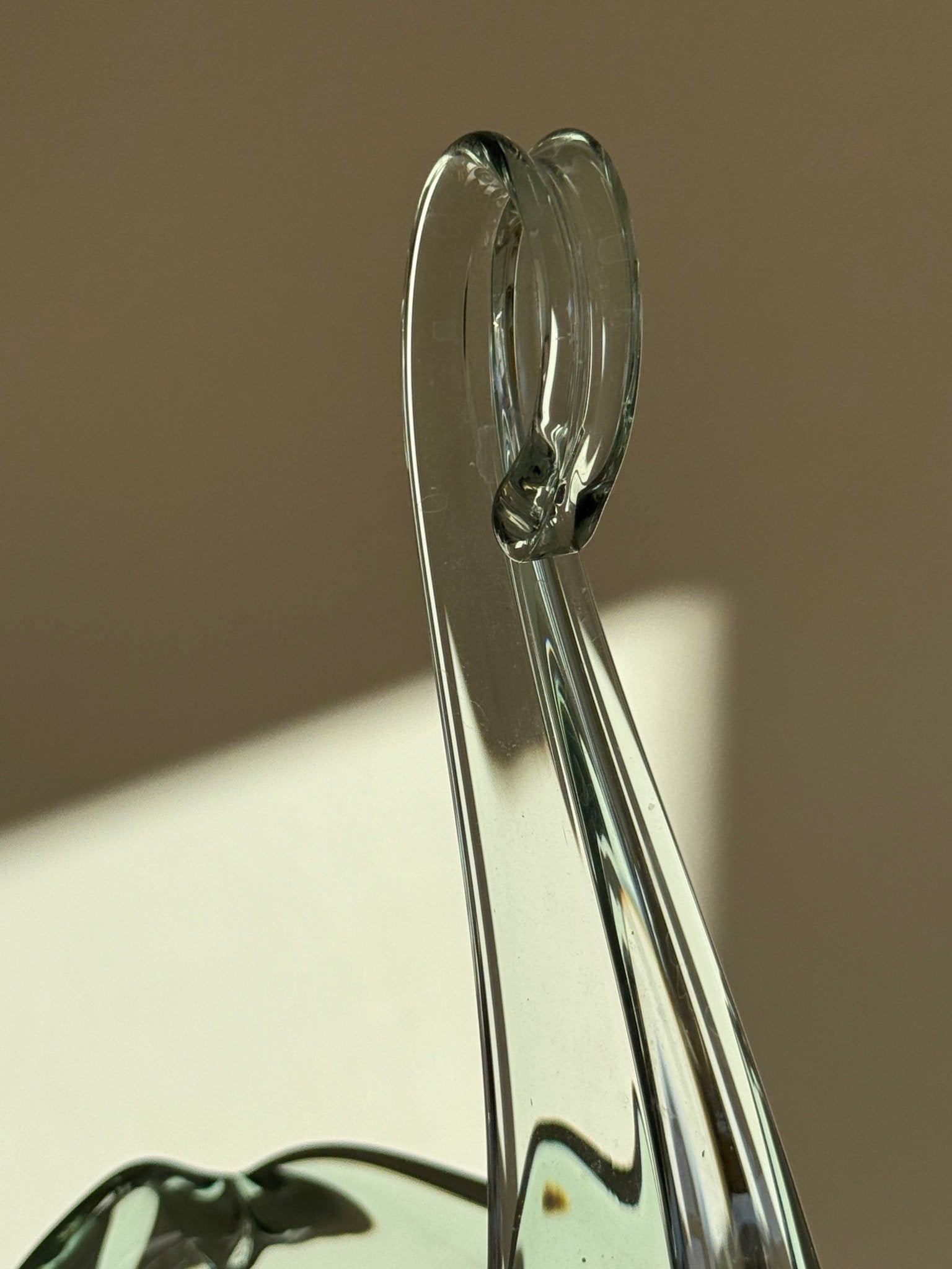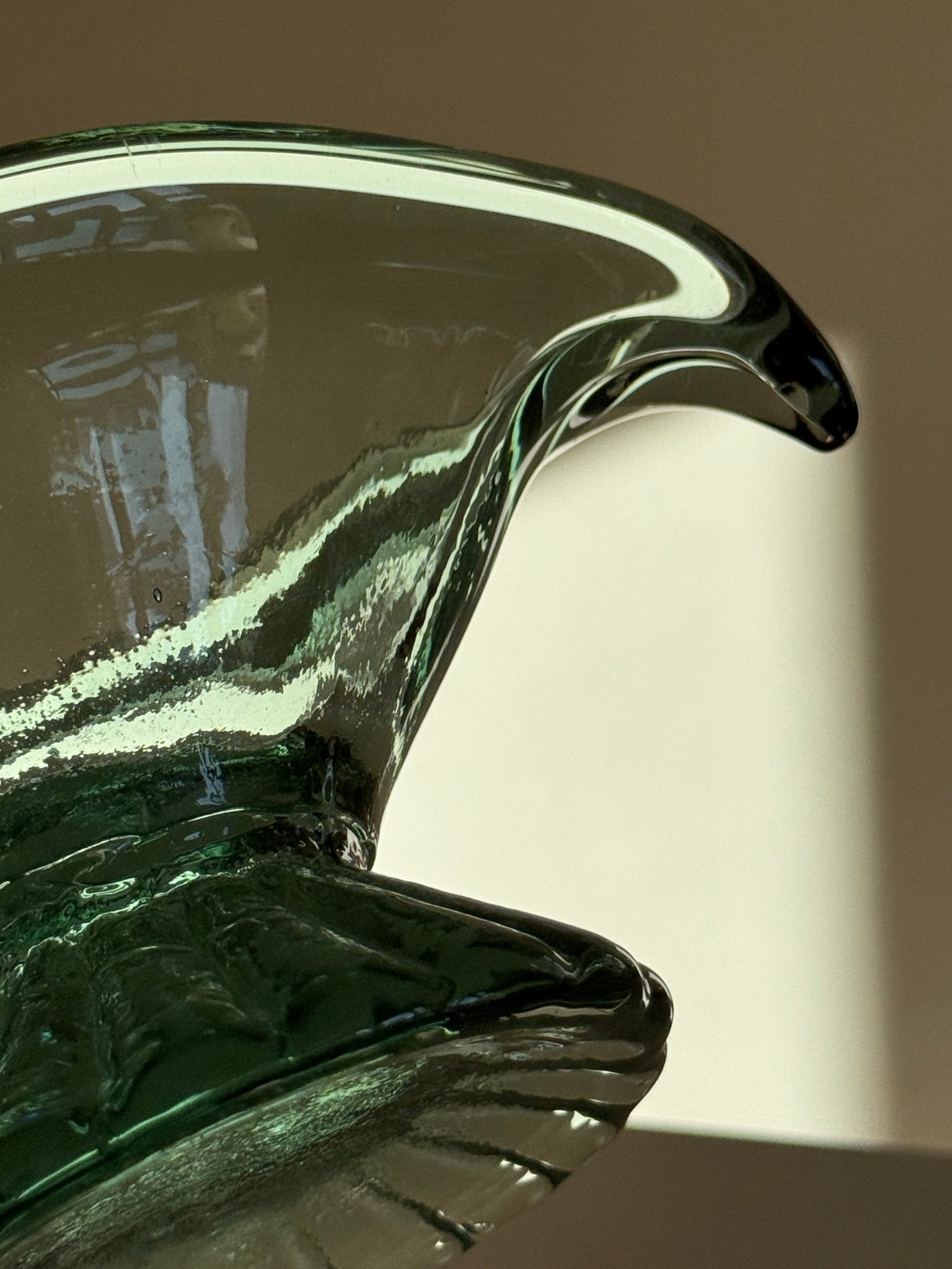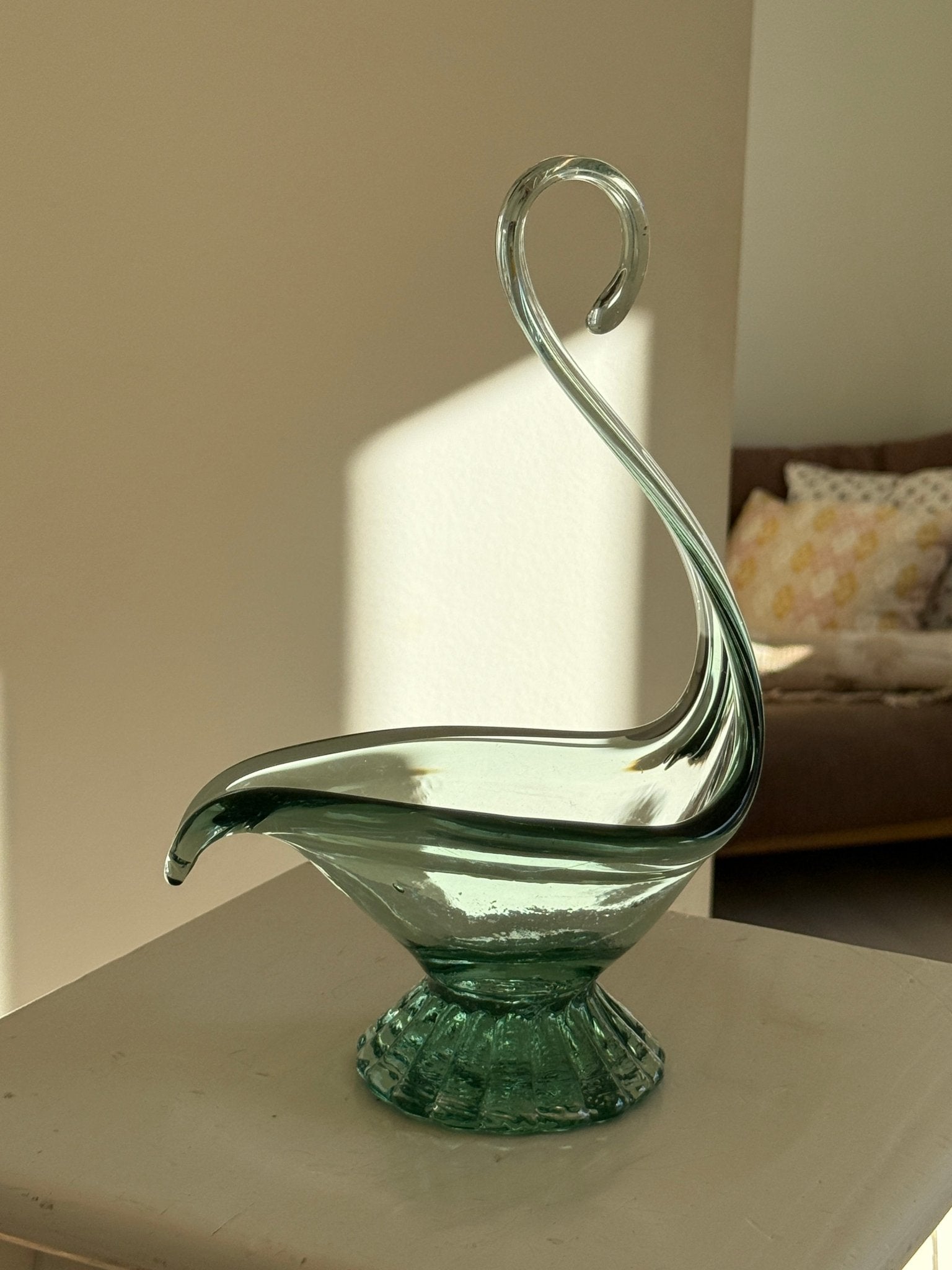 Elegant swan bowl in green glass. Excellent for displaying fruits. In mint condition.