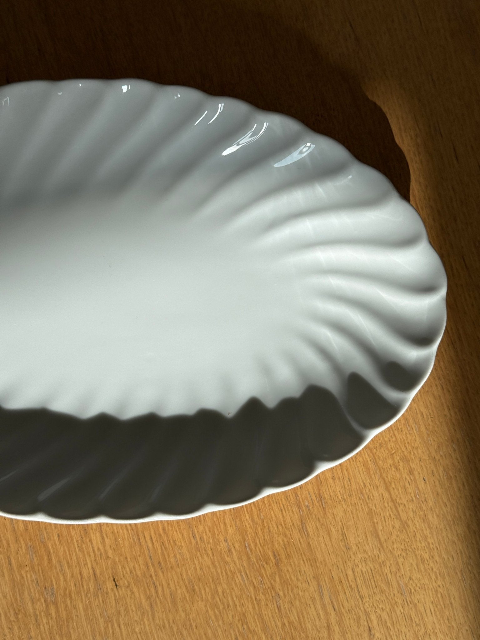 Beautiful white swirl platter. In excellent condition except from one minor cut.